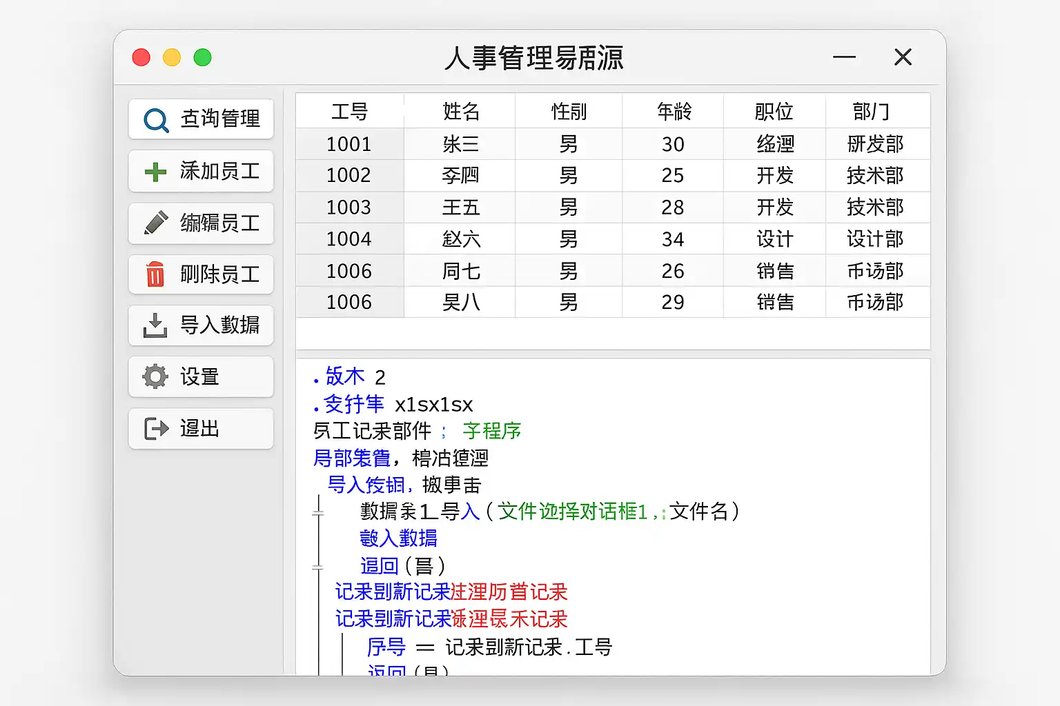 - 作为教学/验证原型/基层人事管理工具:选易语言源码。