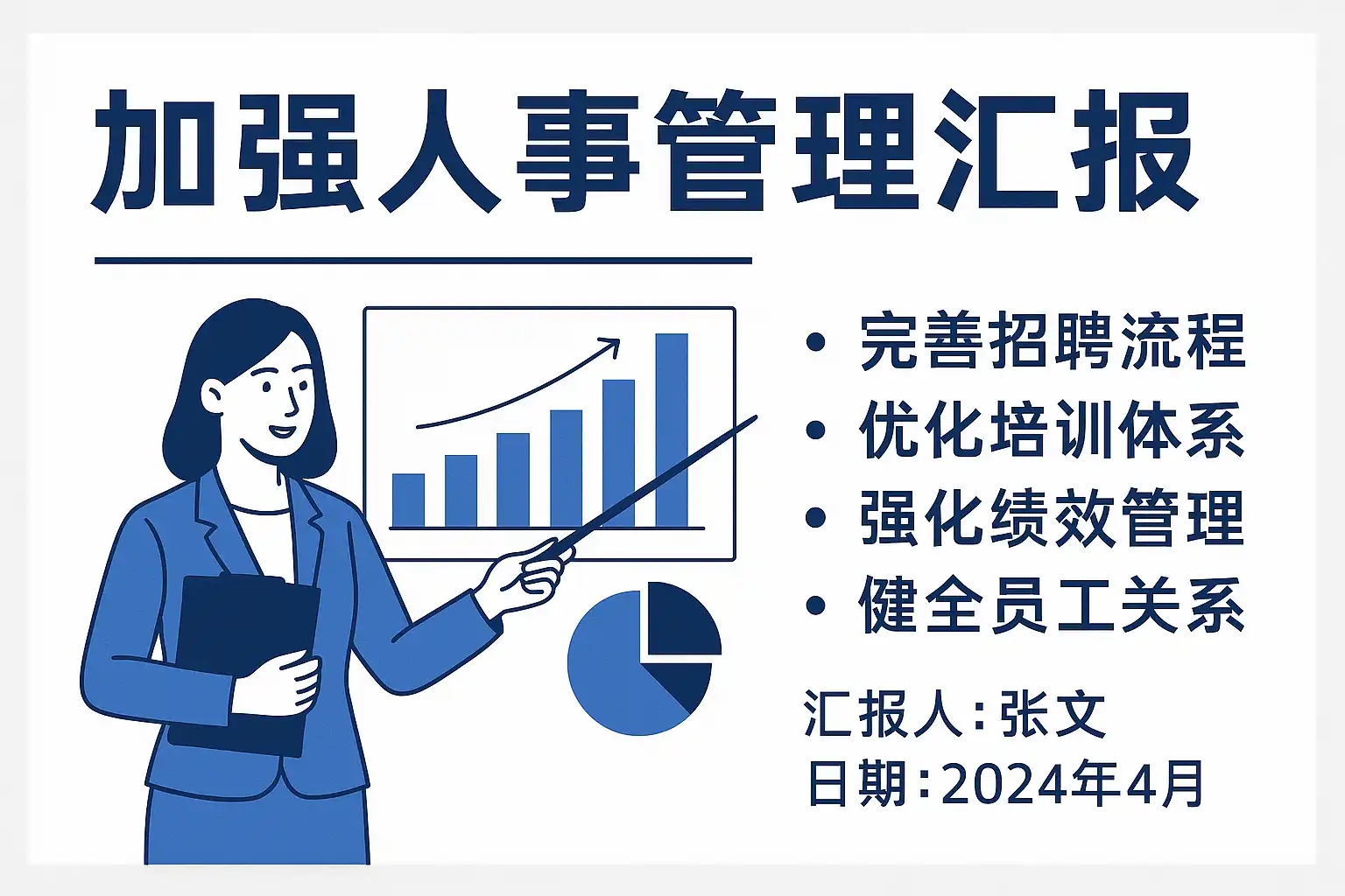 - 明确汇报目标:聚焦核心人事指标,如员工流动率、招聘效率等。