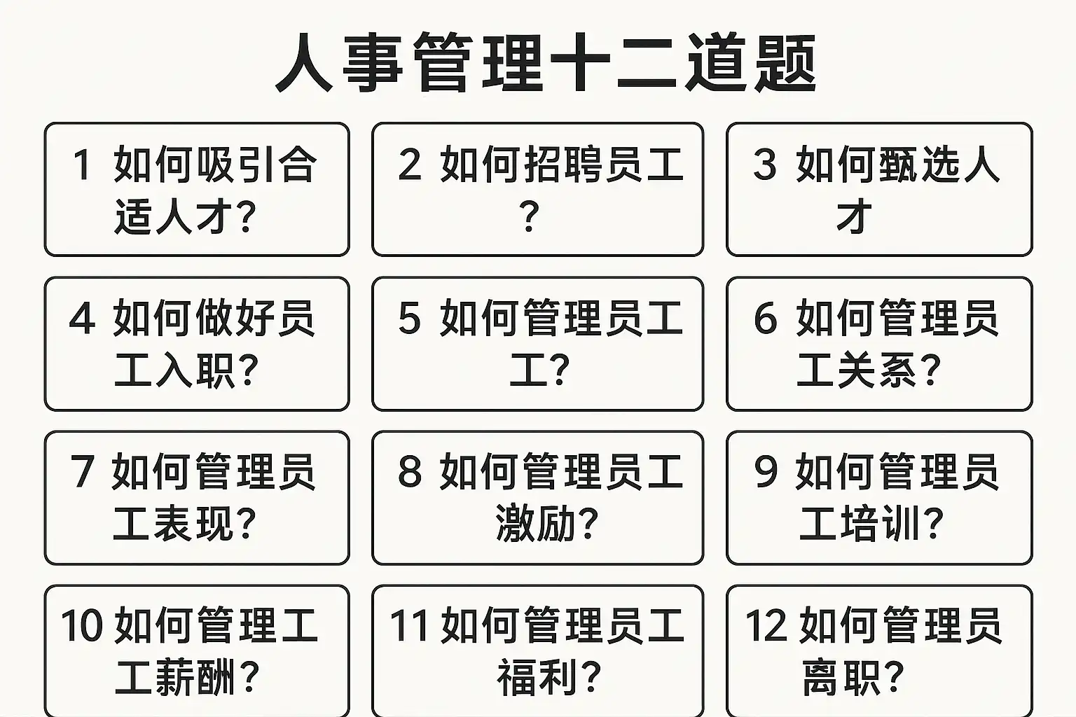 附:人事管理十二道题的整体难点图谱与优先级建议