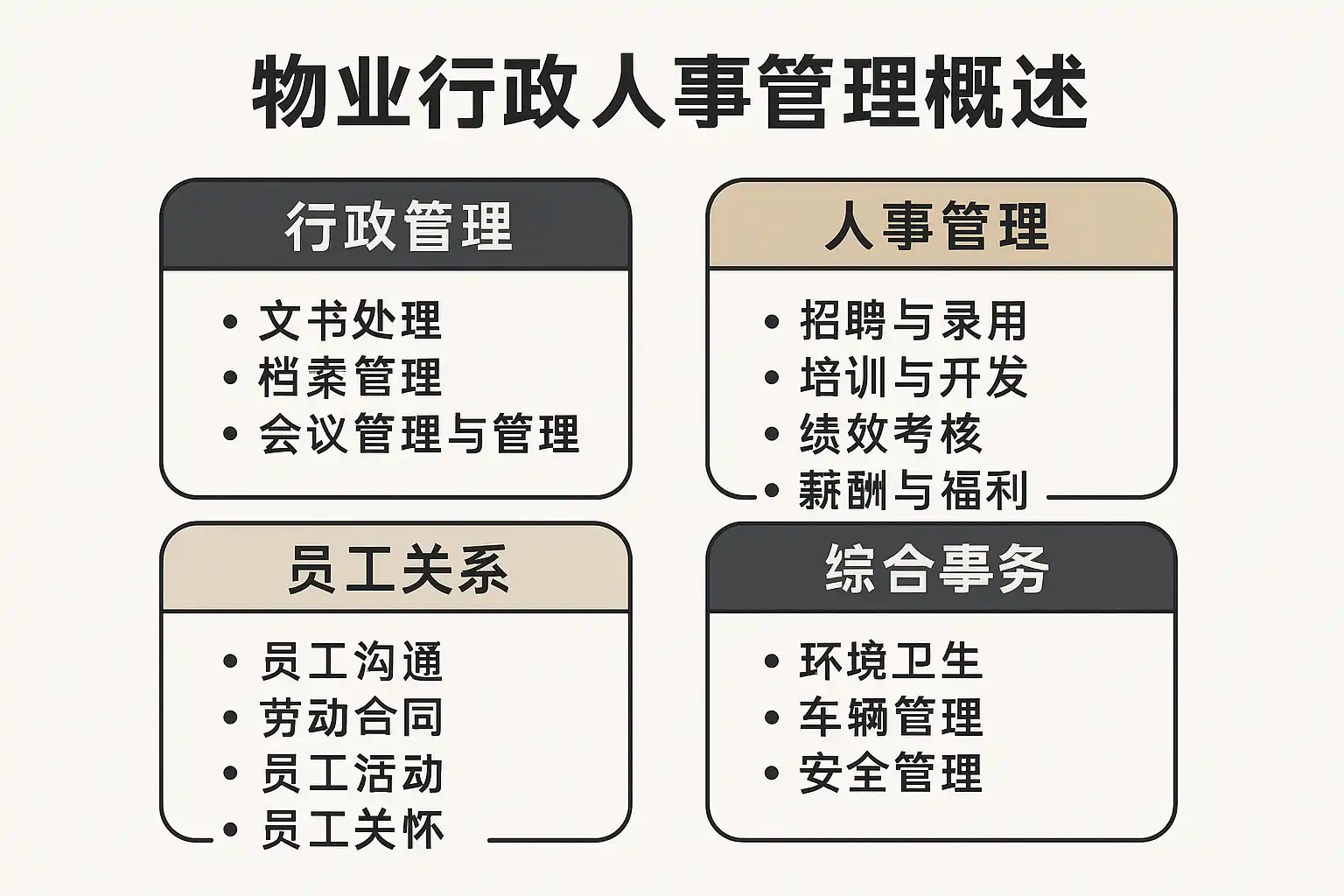 - 与工程、客服、安保、保洁等多条线协同,行政人事需成为“流程枢纽”。