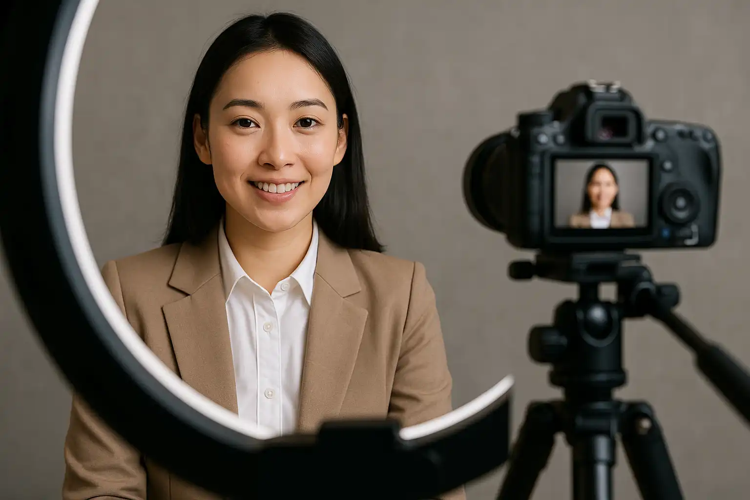 - 目光:看摄像头而非屏幕,使用“隐形提词卡”(关键词贴近镜头边)。