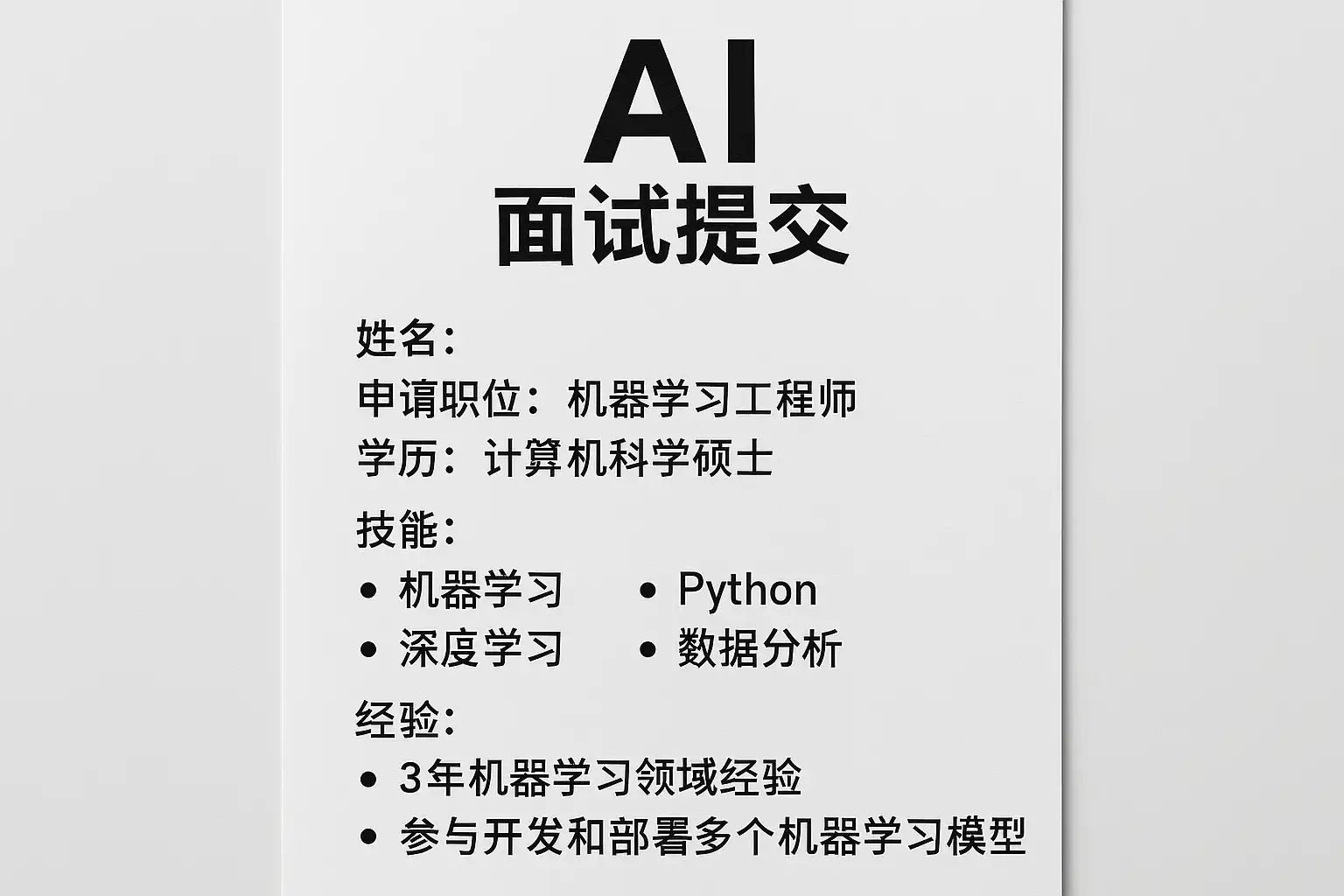 - 关键字优化:结合职位描述自然融入相关关键词,提高AI筛选通过率。