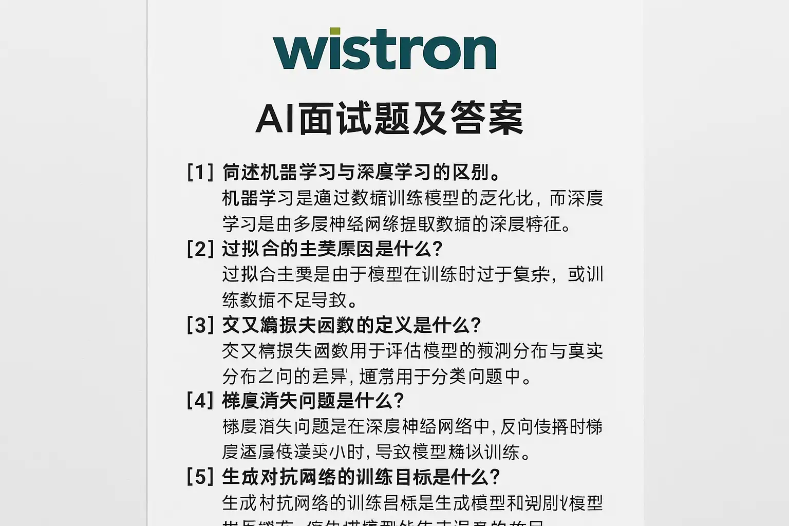 二、纬创软件常见AI面试题与答案精析