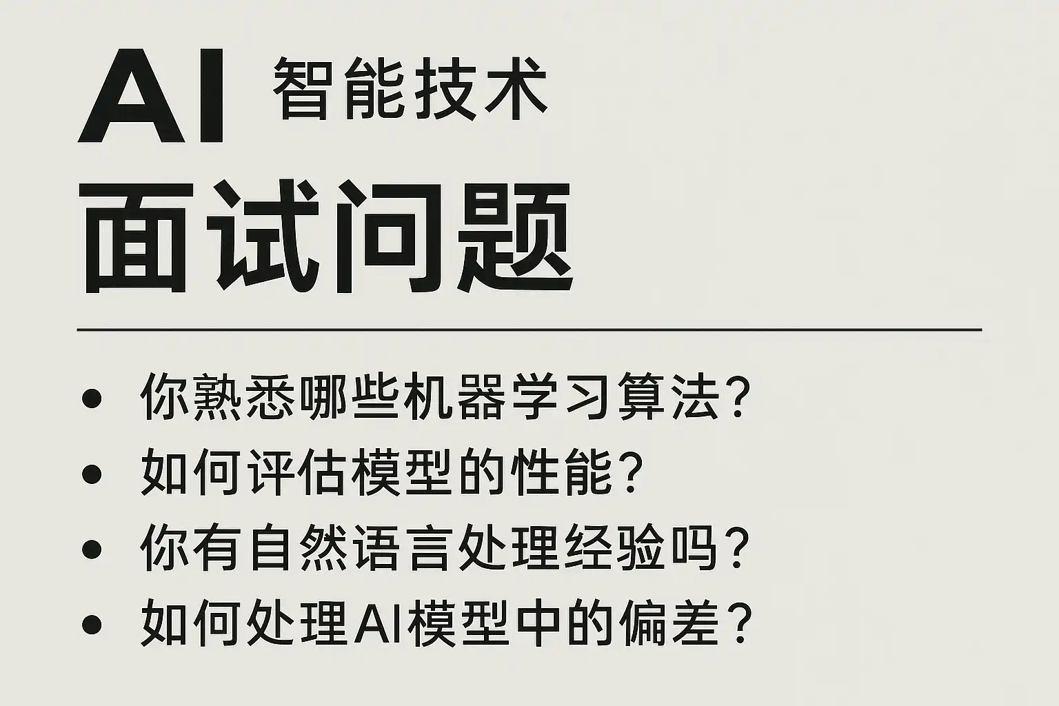 AI智能技术面试常见的核心考察点包括: