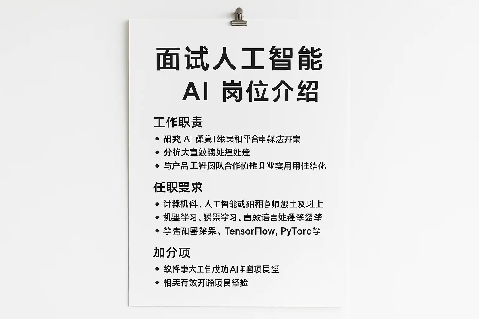 - 项目经验:实际AI项目经历,解决问题的思路和结果。