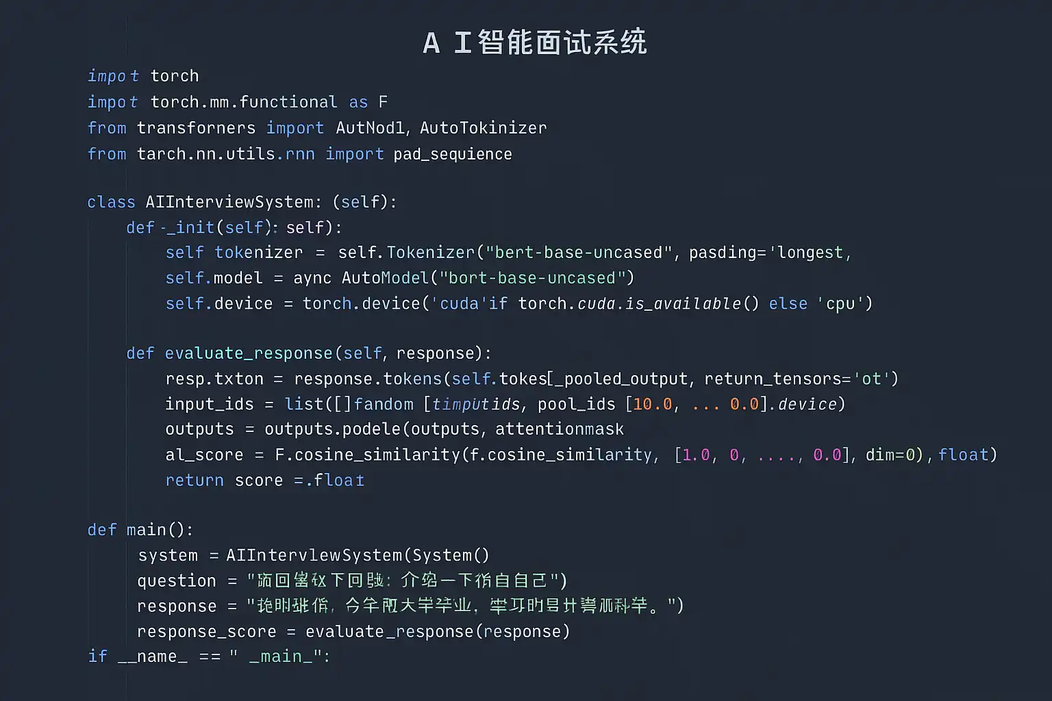 - 自然语言处理:利用BERT等预训练模型进行语义理解,提升面试问答匹配度。