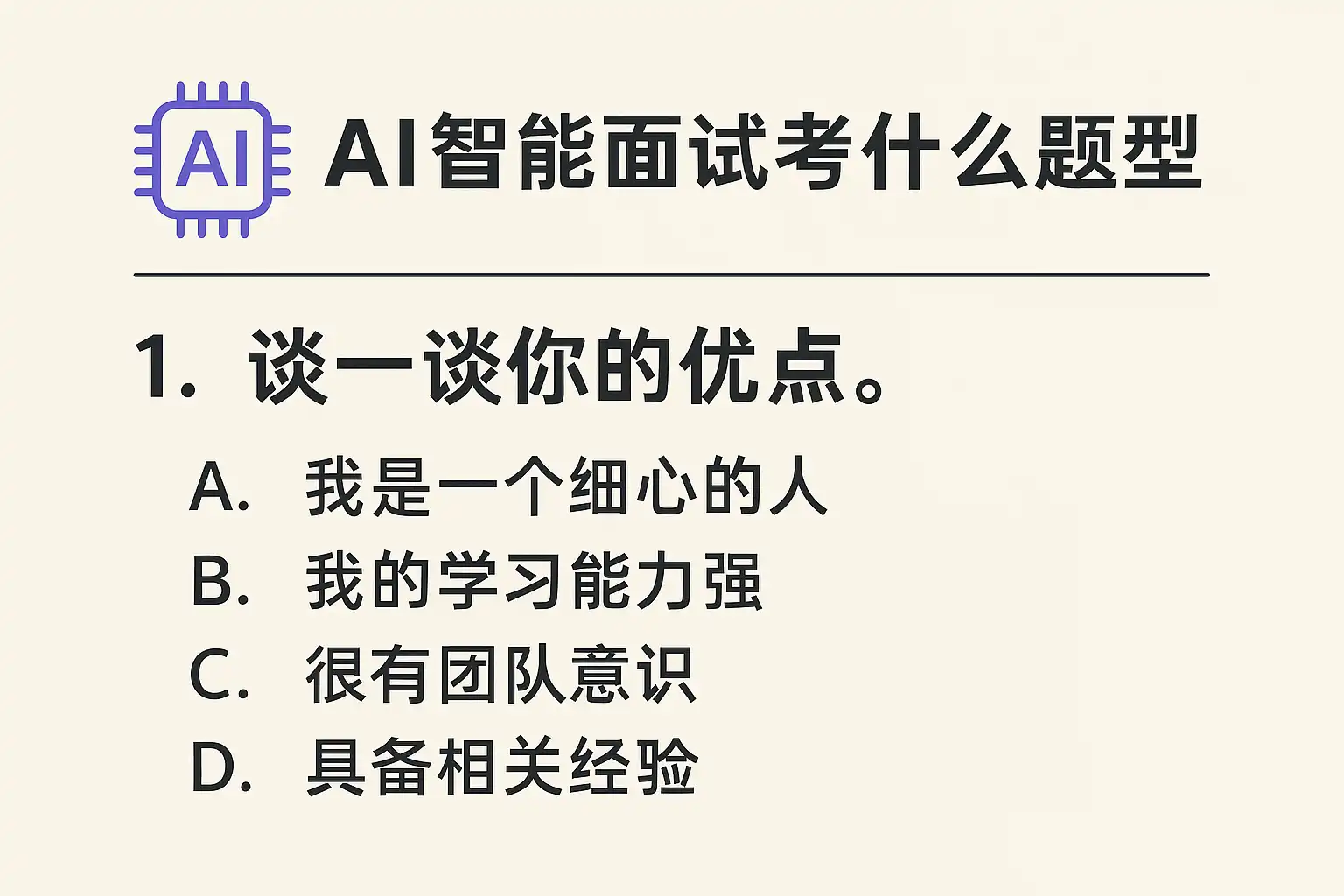 《AI智能面试题型解析,主要考哪些内容?AI智能面试考什么题型,如何准备最好?》