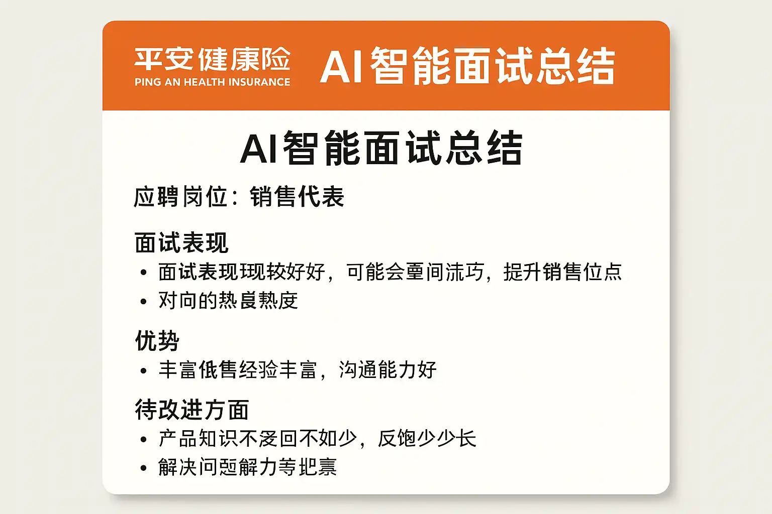 因此,AI智能面试不仅提升了平安健康险招聘效率,也增强了候选人体验和面试质量。
