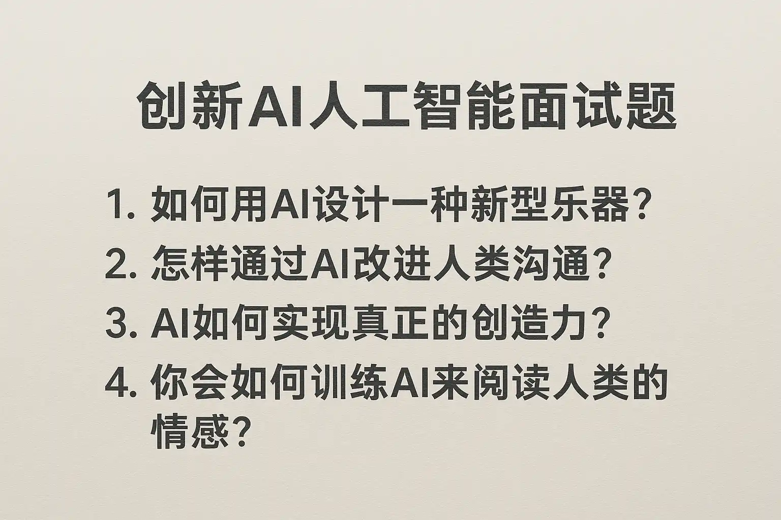 我最近正在准备创新AI人工智能的面试,但不太清楚面试题一般会涉及哪些方面?想了解常见的题型和考察重点,方便有针对性地准备。