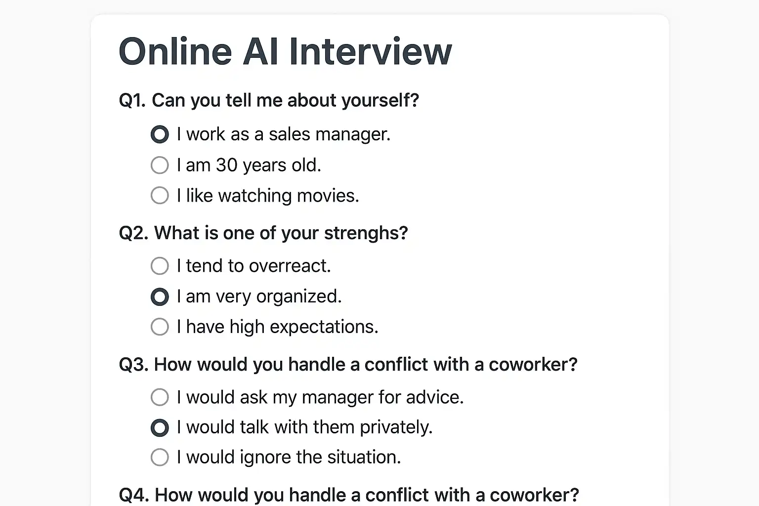 二、线上AI面试常见题型与答案解析