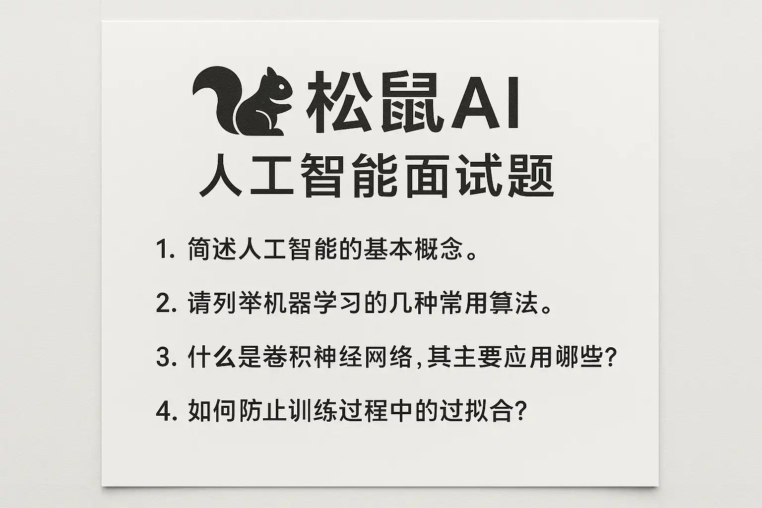 松鼠AI人工智能面试题主要涵盖以下几类: