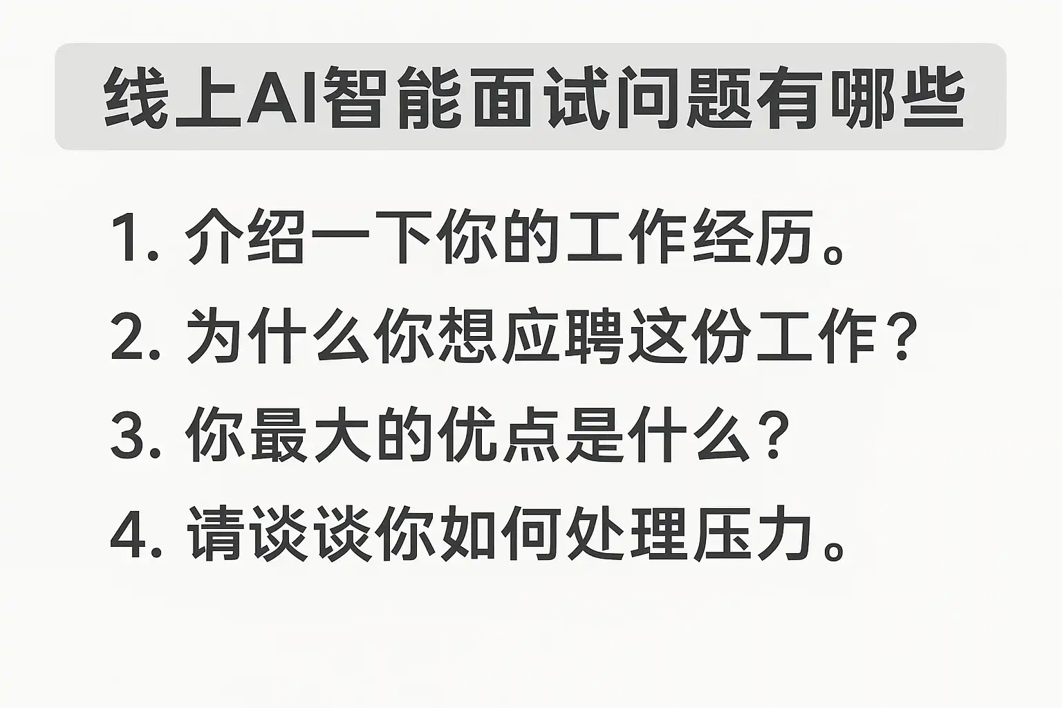 - 提前演练:使用模拟AI面试软件或视频录制训练。