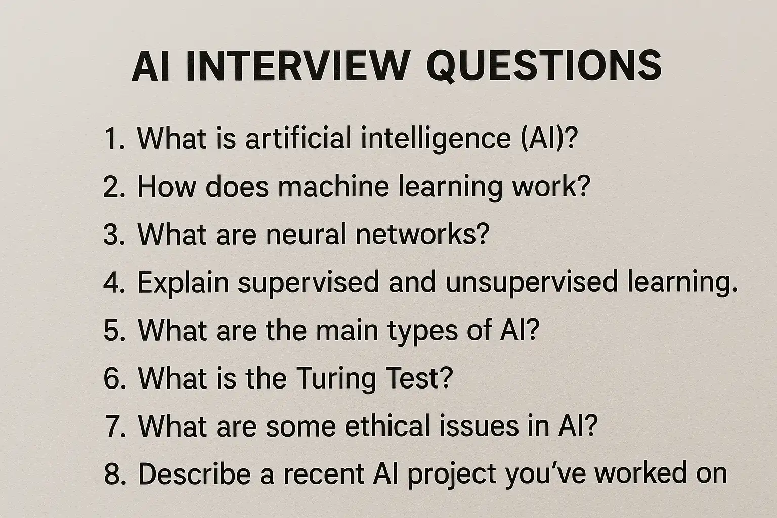 如果你需要,我还可以帮你 整理一份完整的AI常见面试题题库表格,方便你直接对照练习。你要我补充这部分吗?