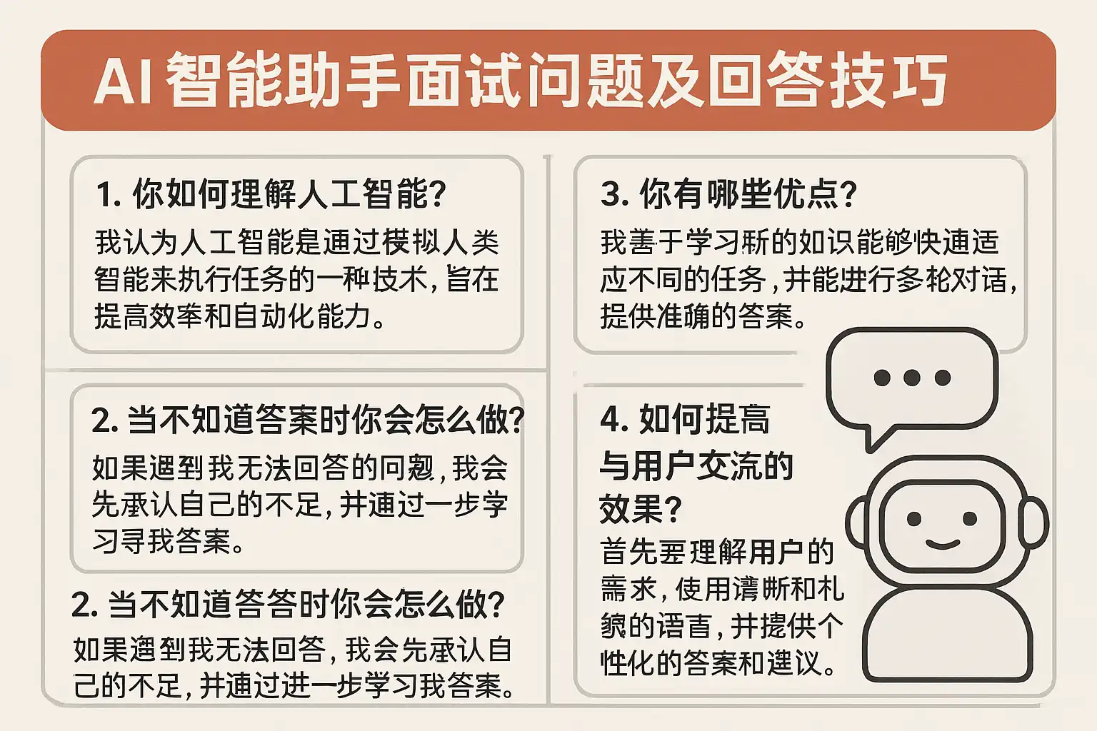 我即将参加AI智能助手岗位的面试,想了解有哪些常见面试问题,提前准备好答案,避免现场紧张和答非所问。