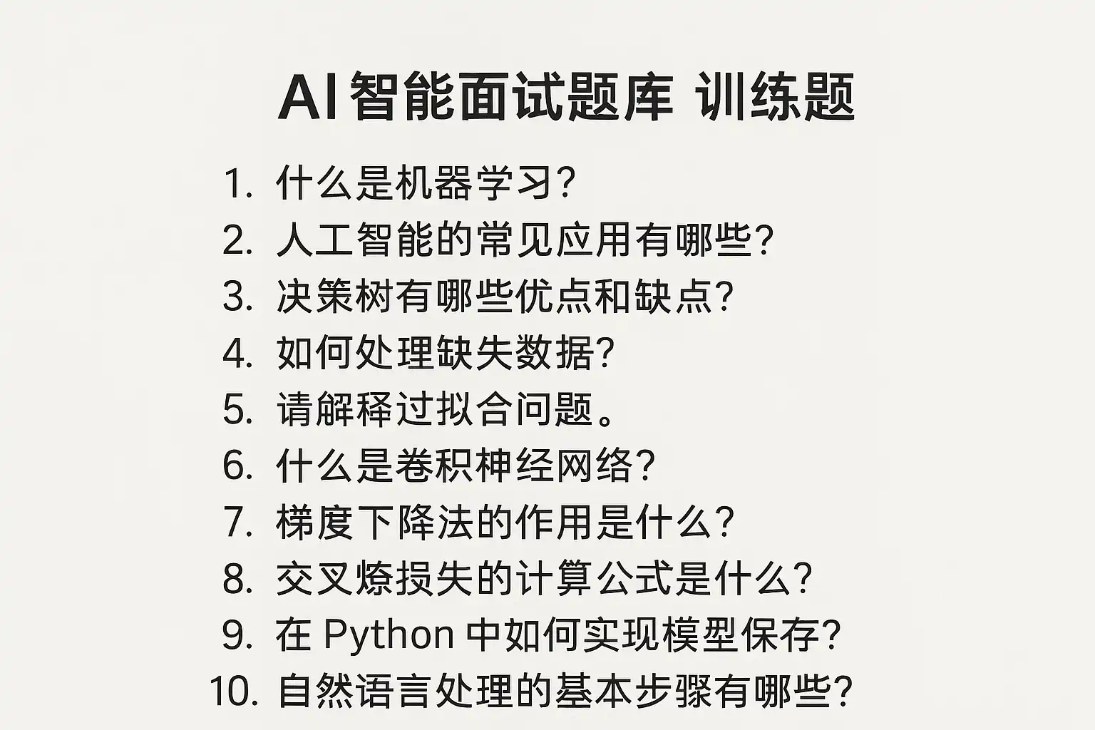 AI智能面试题库训练题主要包括以下核心类型:
