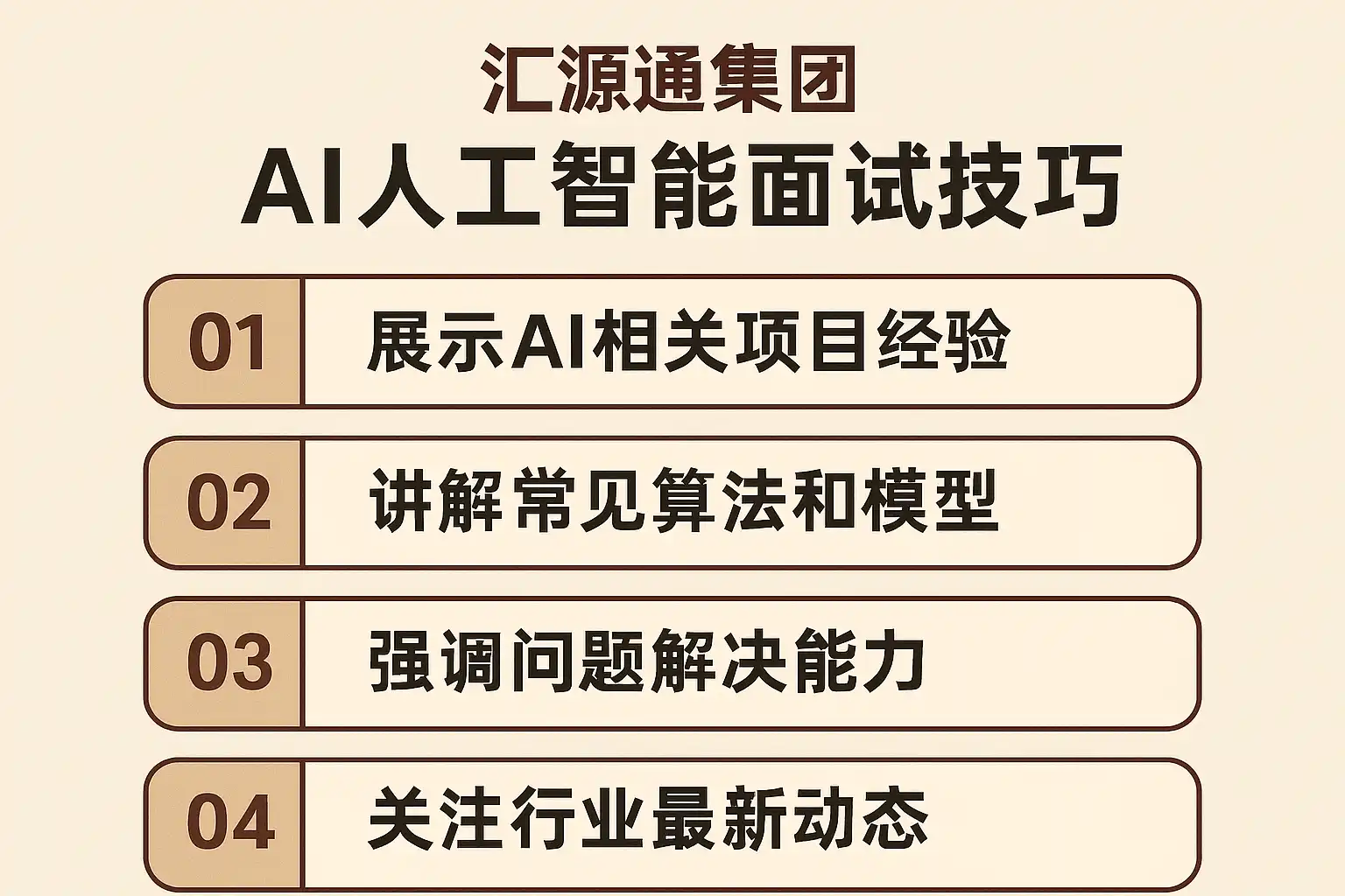 综合来看,想要在汇源通集团AI人工智能面试中脱颖而出,需要在技术能力、公司认知、沟通力以及准备方法上全方位优化。
