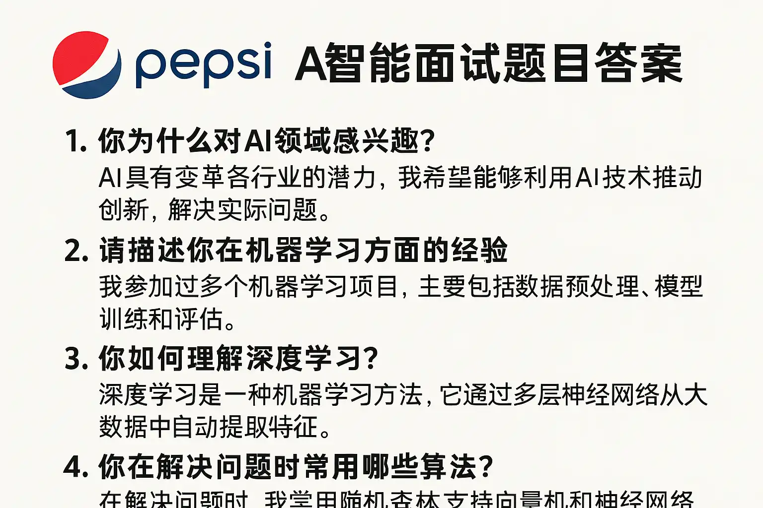 如果你愿意,我可以为你额外生成一份 百事AI面试30道高频题+参考答题框架,帮助你在实操中快速提升。你需要我帮你做这份题库吗?