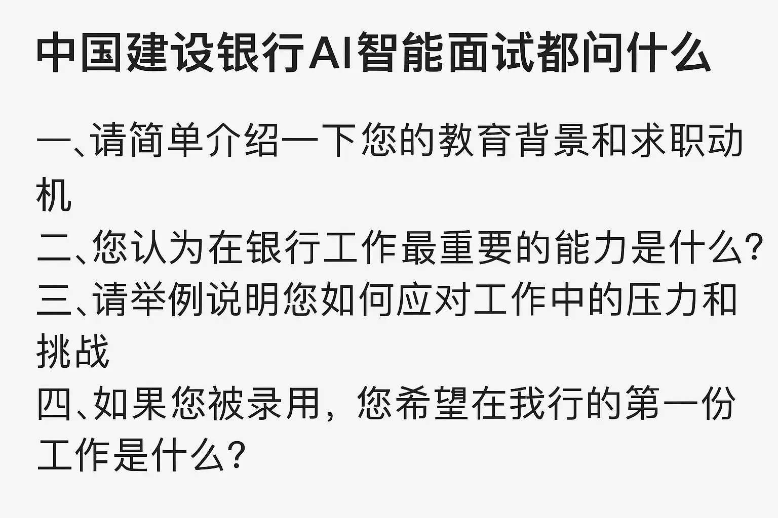 《中国建设银行AI智能面试题目揭秘,面试内容有哪些问题?》