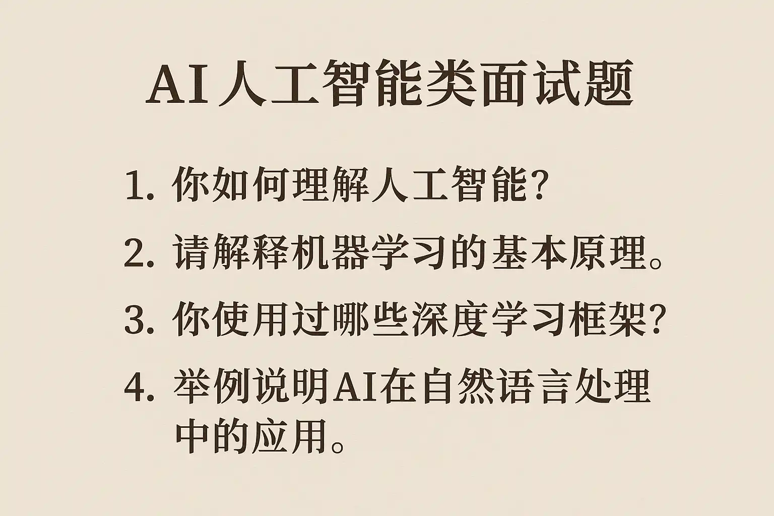 好的,我已经理解了你的要求和内容结构。你给的标题是:AI人工智能类面试题大全,如何备考才能高效通过?