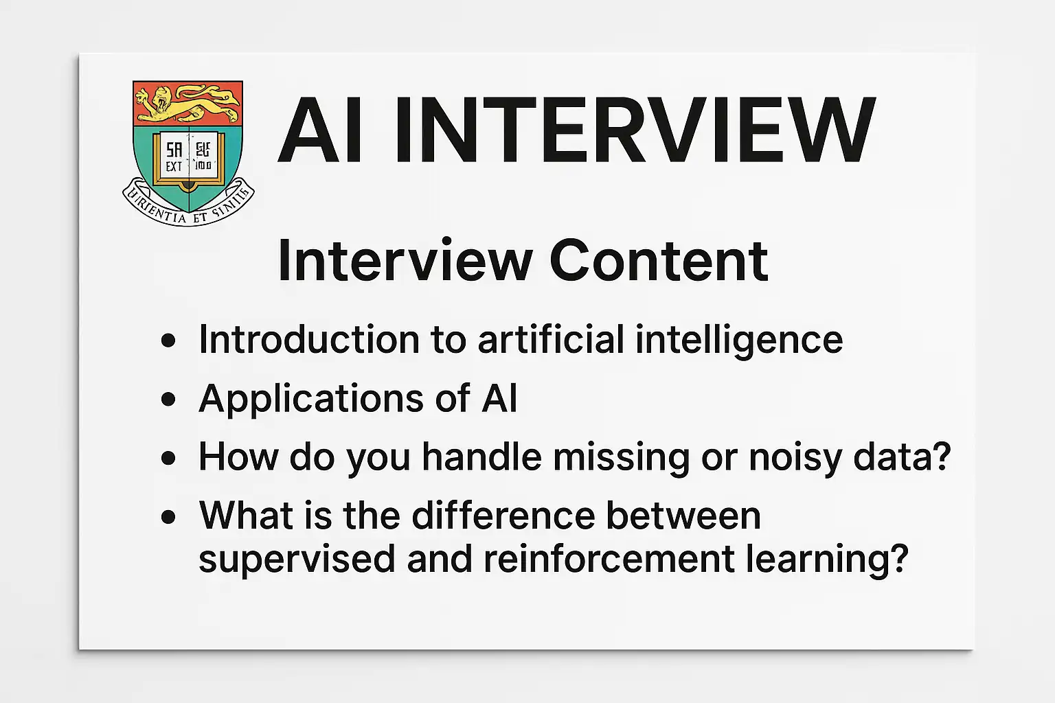 港大AI人工智能面试主要涵盖以下内容:
