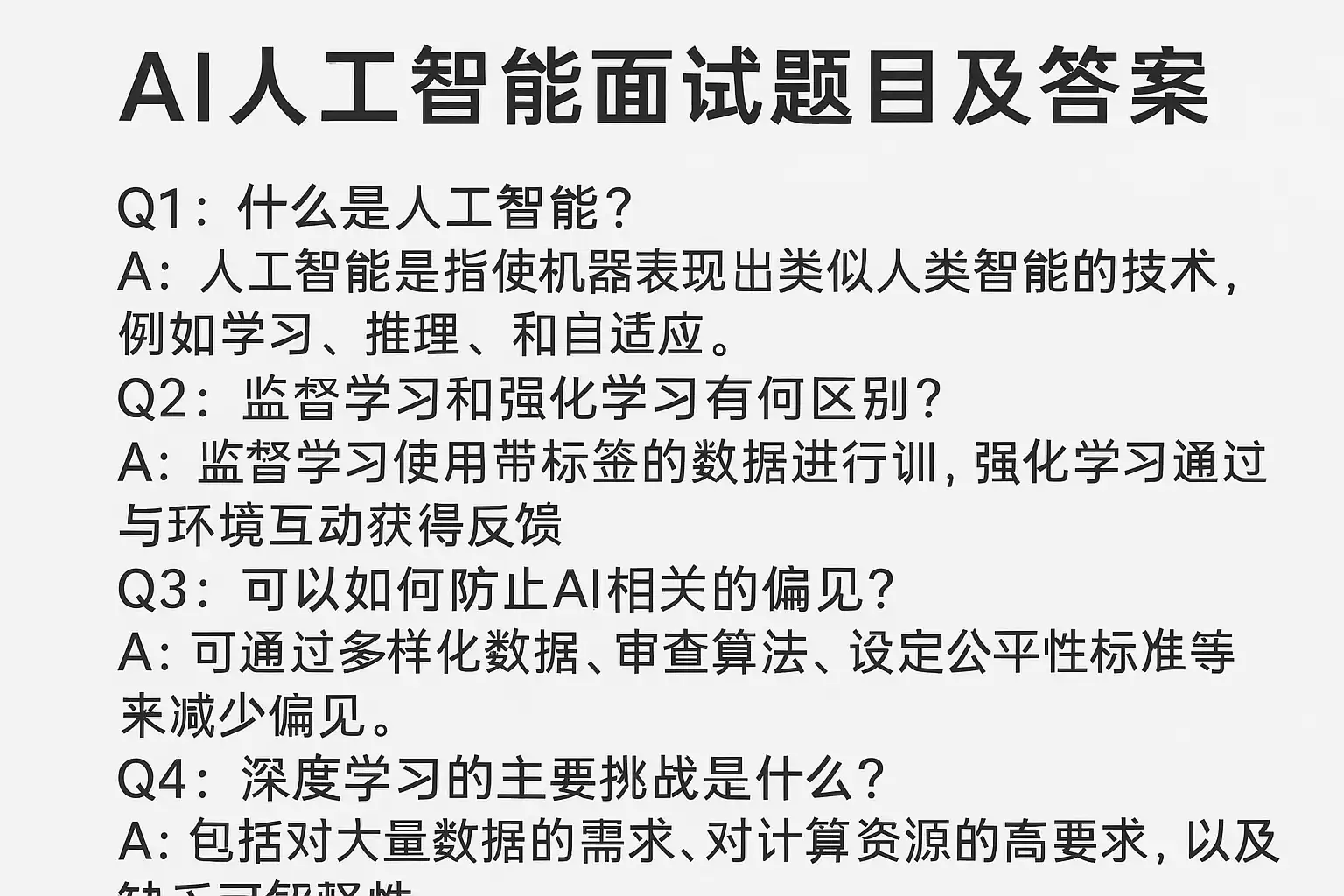 AI面试中,基础理论是首关。一旦答不准,面试官很难相信你能处理复杂任务。以下是一些典型必考题及答案要点: