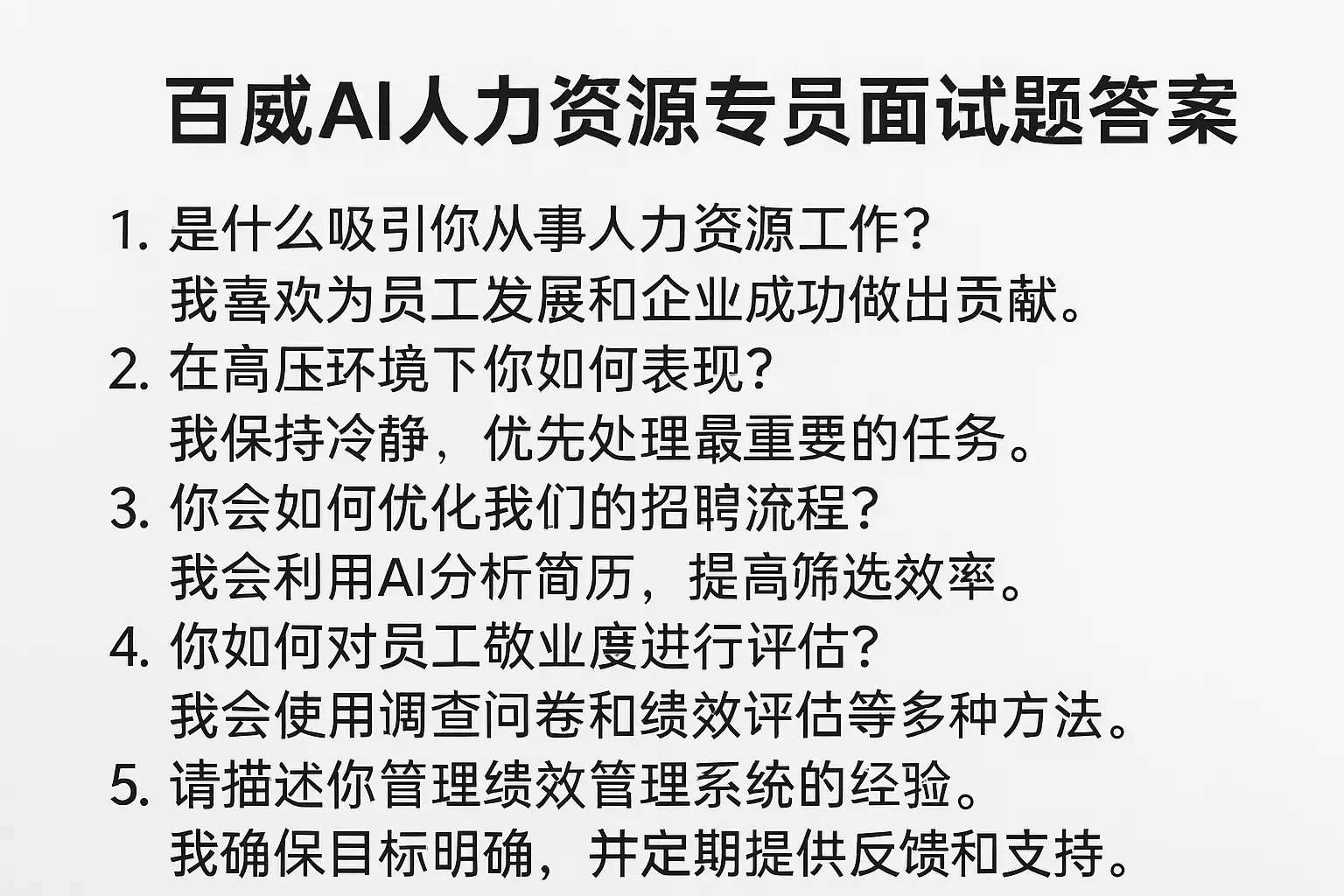 百威AI人力资源专员面试题答案解读,如何高效准备面试?