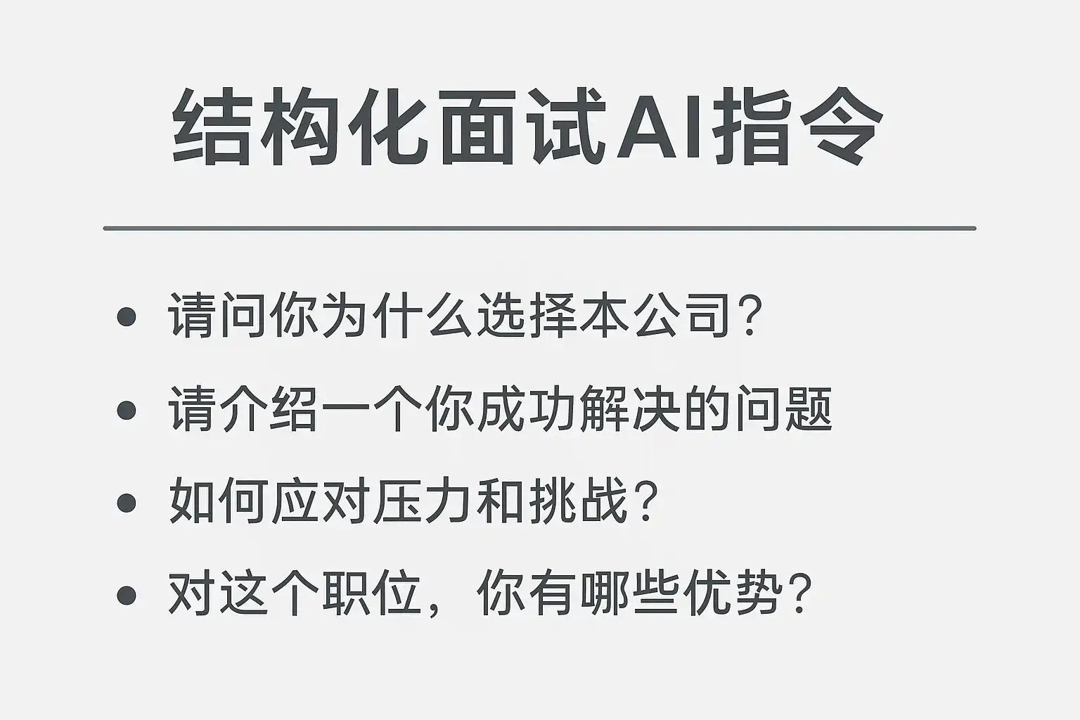 我在准备结构化面试时,听说AI指令能优化面试流程,但不太清楚具体指令内容和应用场景,能不能详细介绍一下它们是什么以及实际如何提升面试效率?