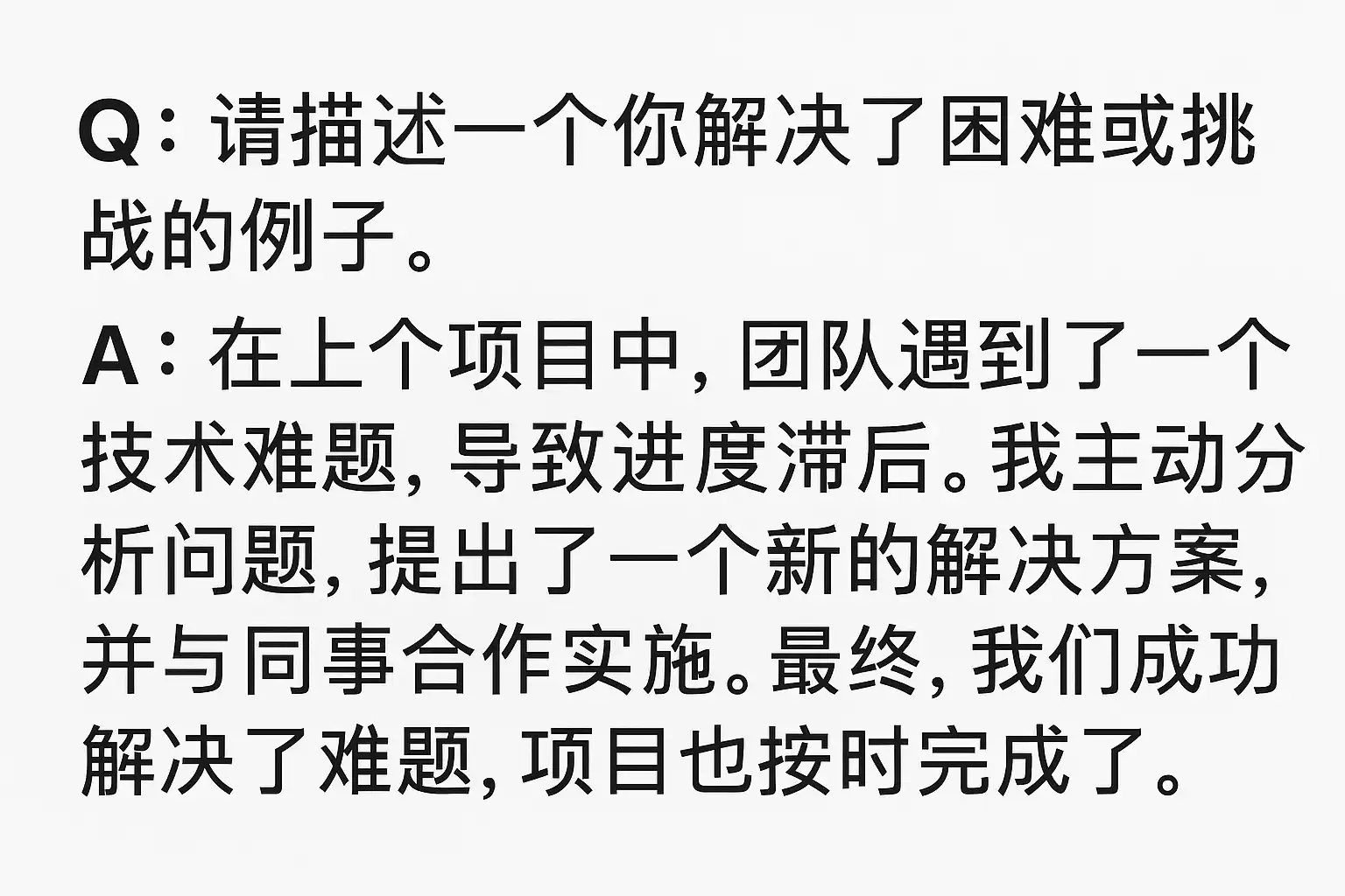- 然后根据常见结构化答题模板(如STAR法则:Situation, Task, Action, Result)生成分层答案;