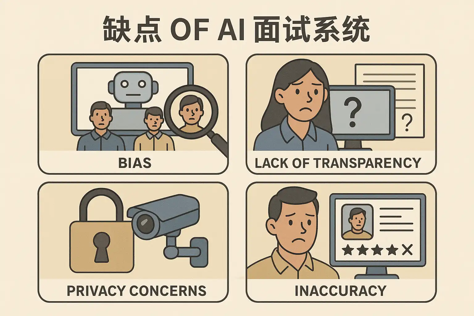 我在考虑使用AI智能识别面试系统时,听说它有一些缺点。具体来说,这些缺点表现在哪些方面?我担心这些问题会不会影响面试的公平性和准确性。