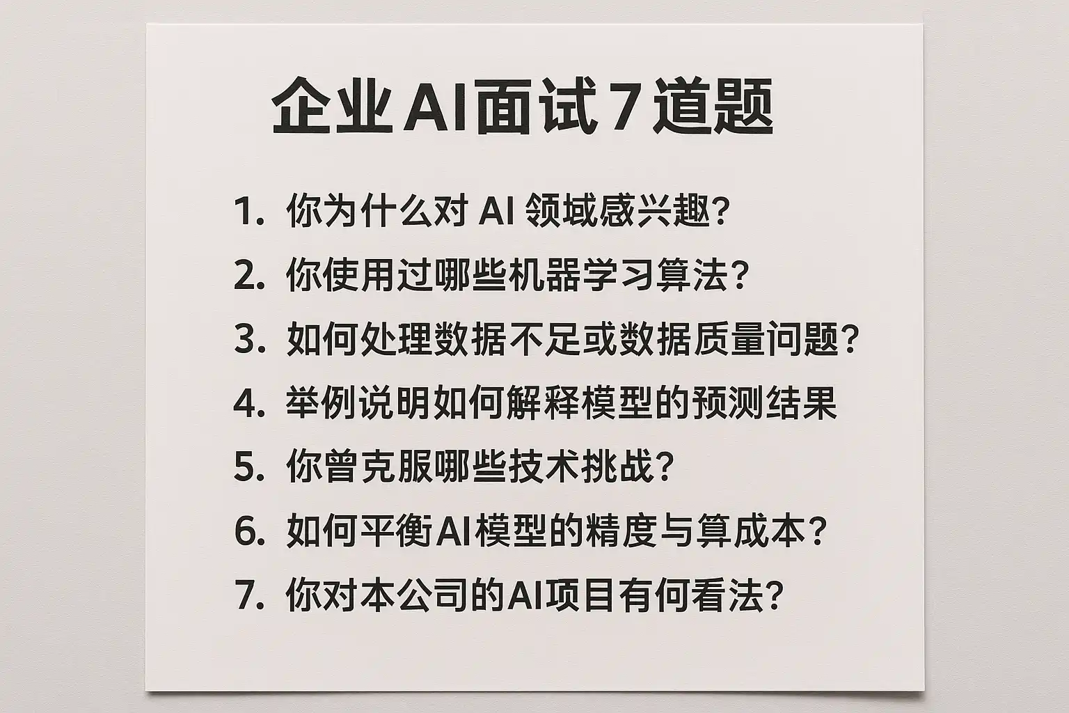 二、7道常见AI面试题及核心答案框架