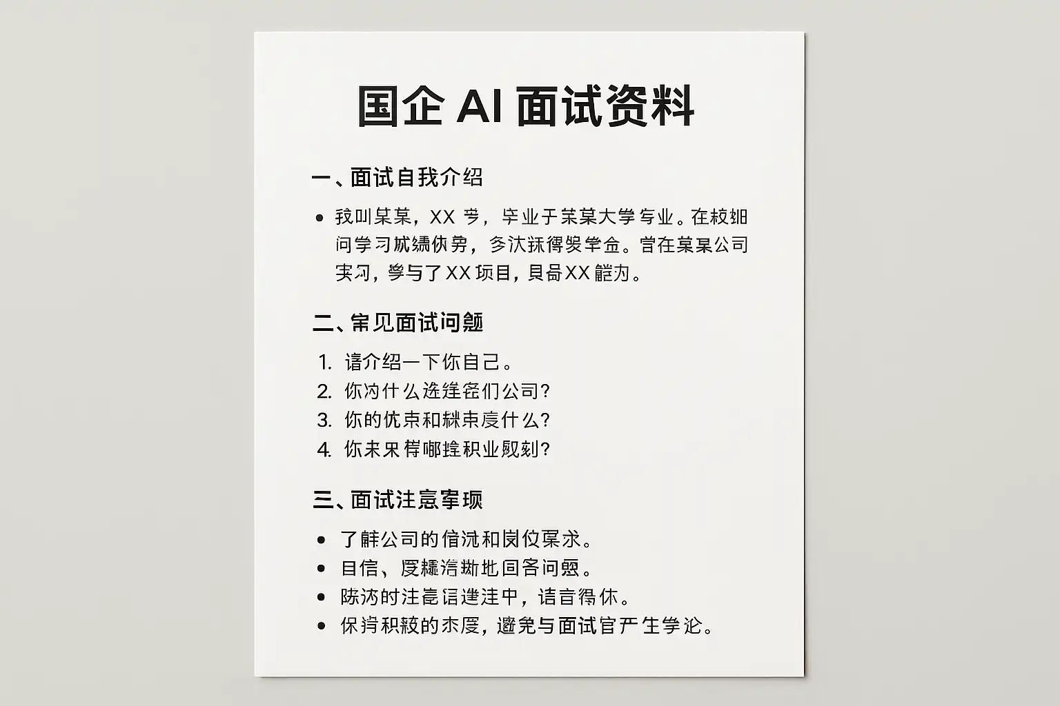 国企AI面试资料主要涵盖以下几个方面: