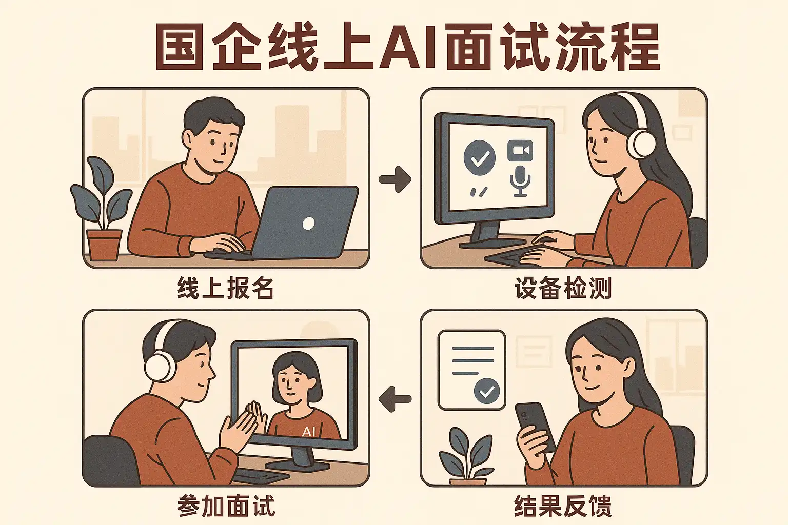 我最近准备国企的线上AI面试,但对整个流程不太了解。能详细说说国企线上AI面试一般有哪些步骤吗?我想提前熟悉流程,避免临场紧张。