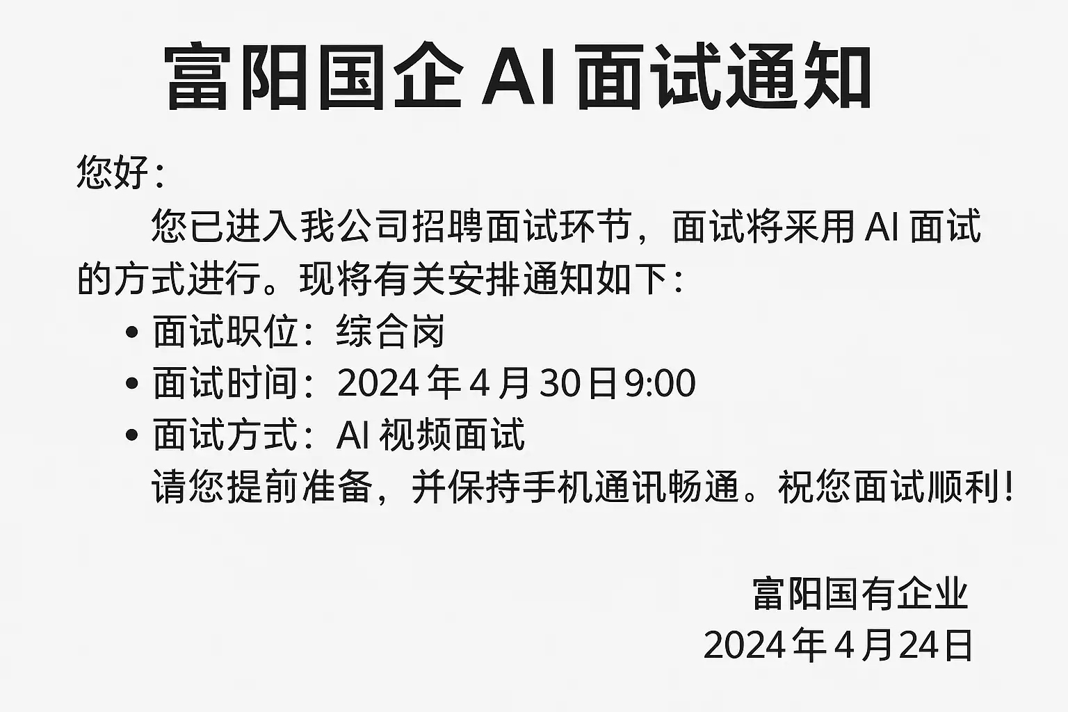 富阳国企AI面试通知,面试流程和准备有哪些?