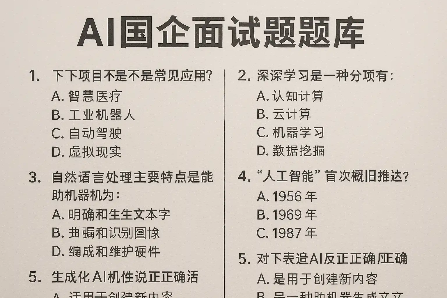 AI国企面试题题库大全包含哪些核心知识点?