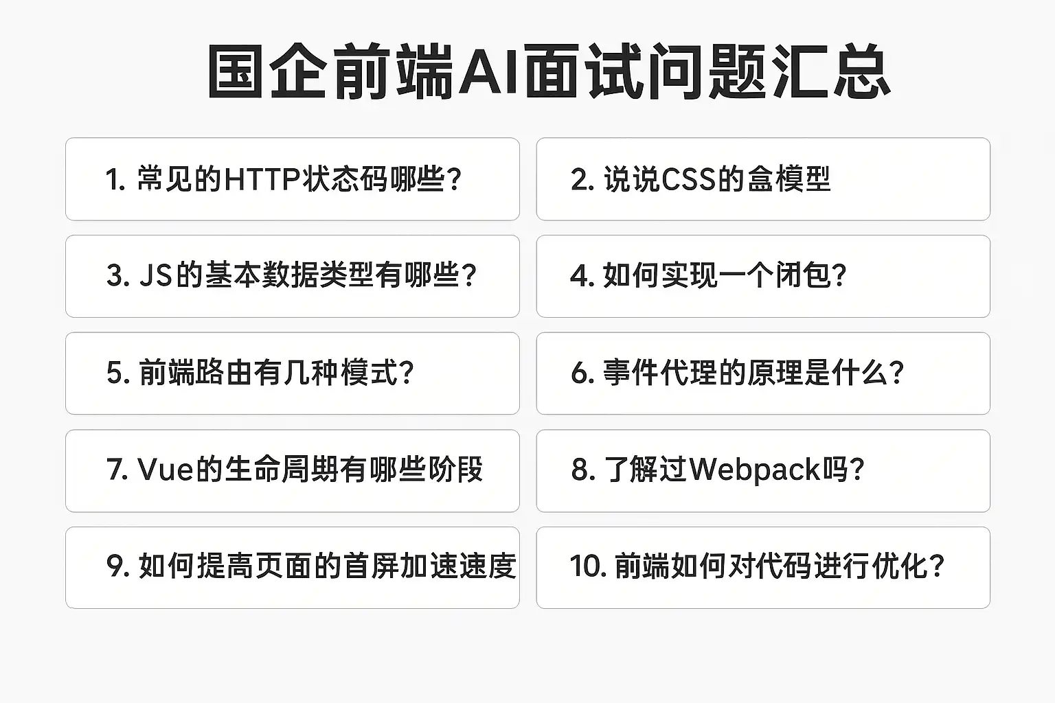 《国企前端AI面试问题汇总,常见题型有哪些?》