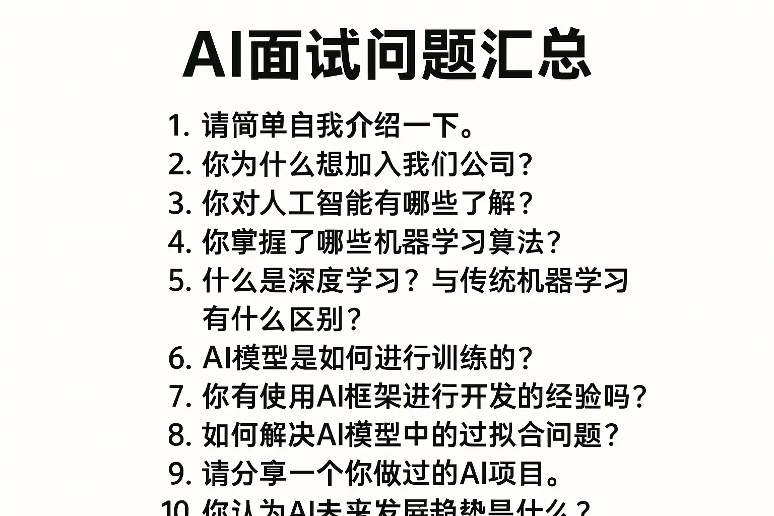 大型国企AI面试问题汇总,面试官最常问的有哪些?