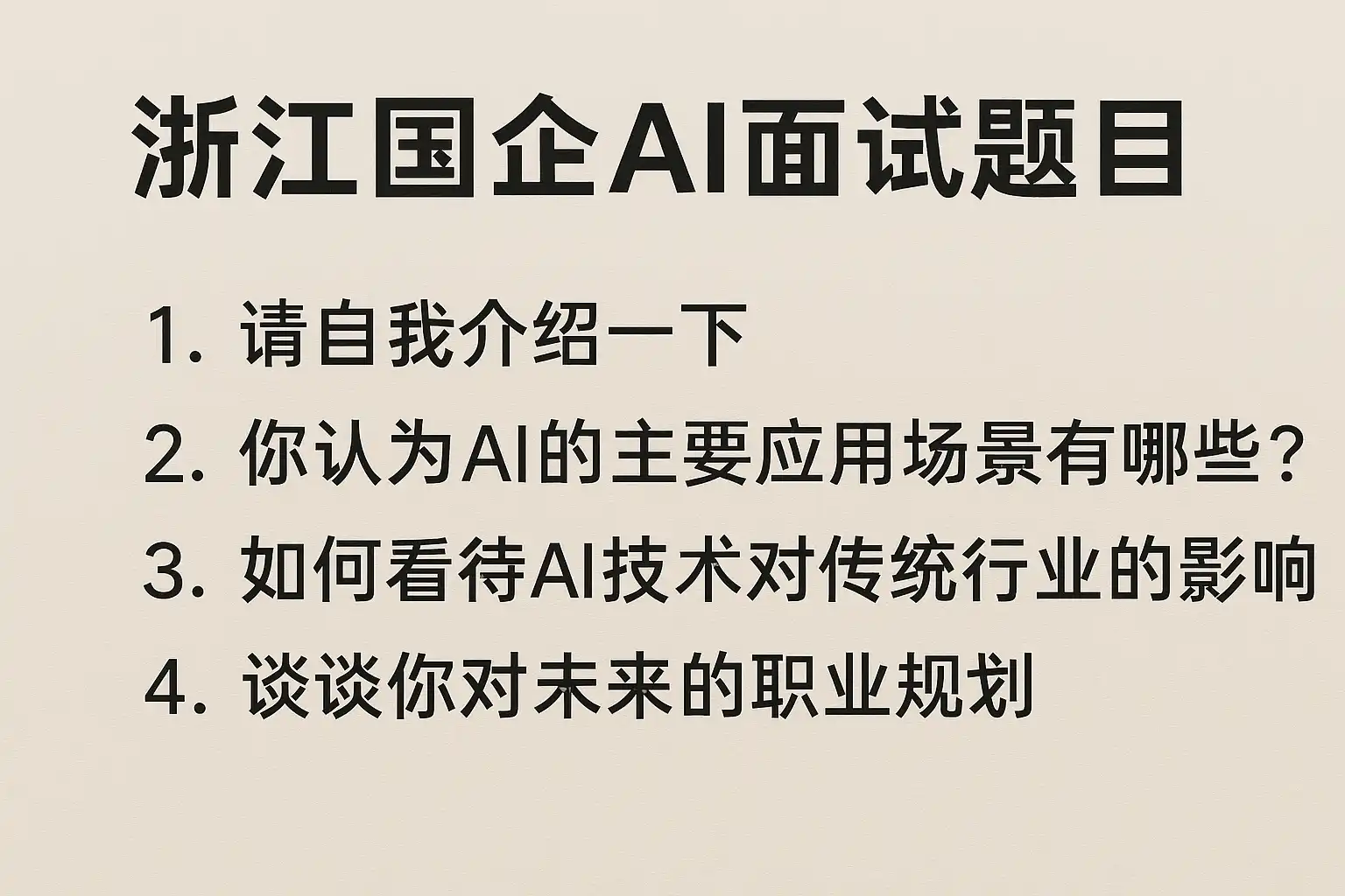 浙江国企AI面试常见题目主要涵盖以下几类: