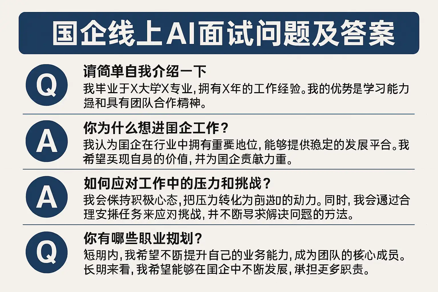 如果你愿意,我还可以为你准备一套 国企线上AI面试高频题+标准答题结构清单,帮助你直接进入针对性训练阶段。 你需要我为你生成这份答题清单吗?