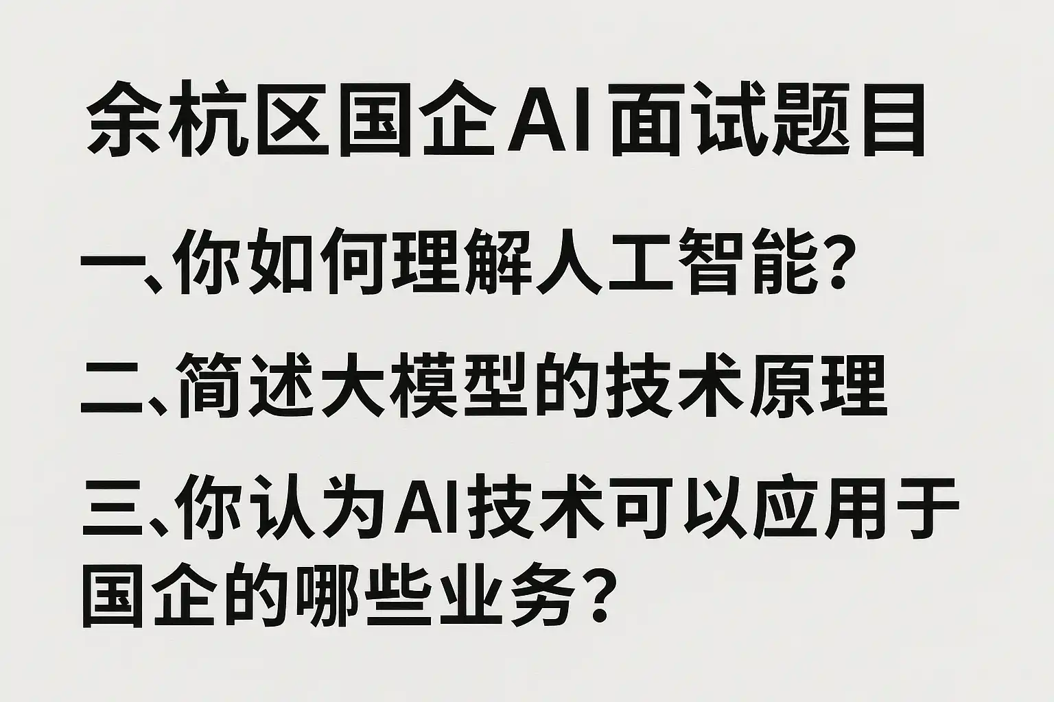 余杭区国企AI面试题目主要涵盖四大类型: