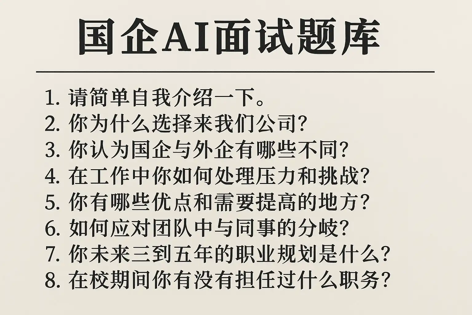 如果你愿意,我可以帮你直接制作一个国企AI面试高频题库与参考答案的扩展文档,这样你不仅能了解难度,还能提前演练,你需要我帮你生成吗?