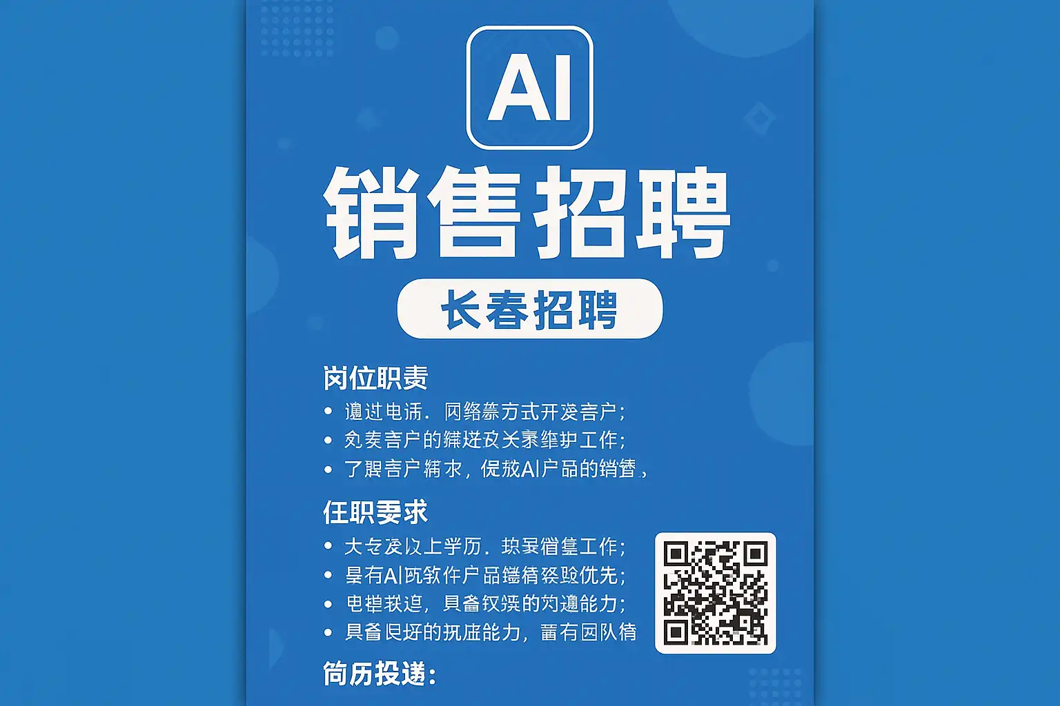 - 关键词自然融入:如“AI销售”、“长春招聘”、“客户管理”等,确保简历被招聘系统检索到。
