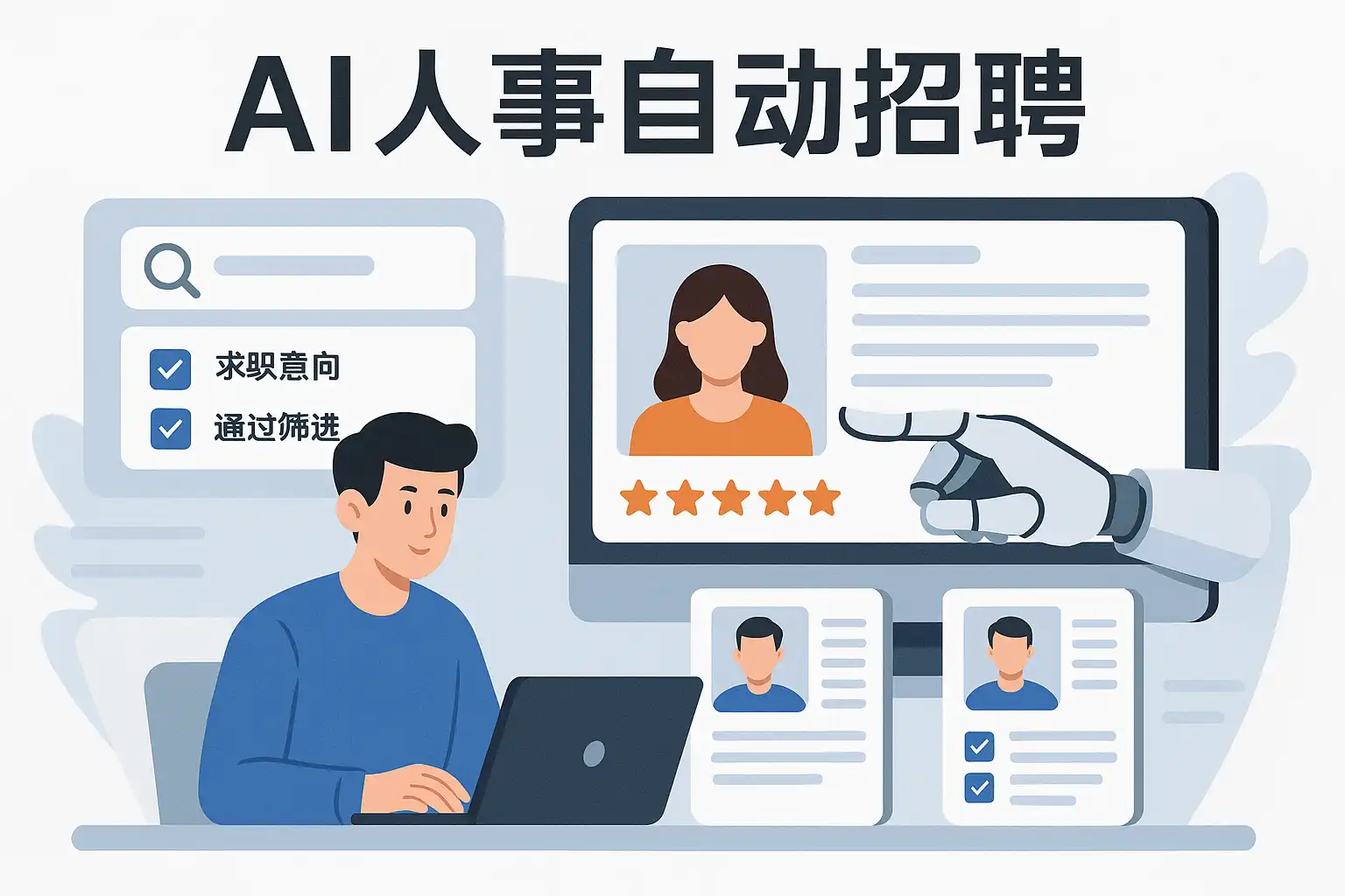 AI人事自动招聘通过智能简历筛选、自动匹配候选人和数据驱动决策,大幅提升招聘效率。具体包括: