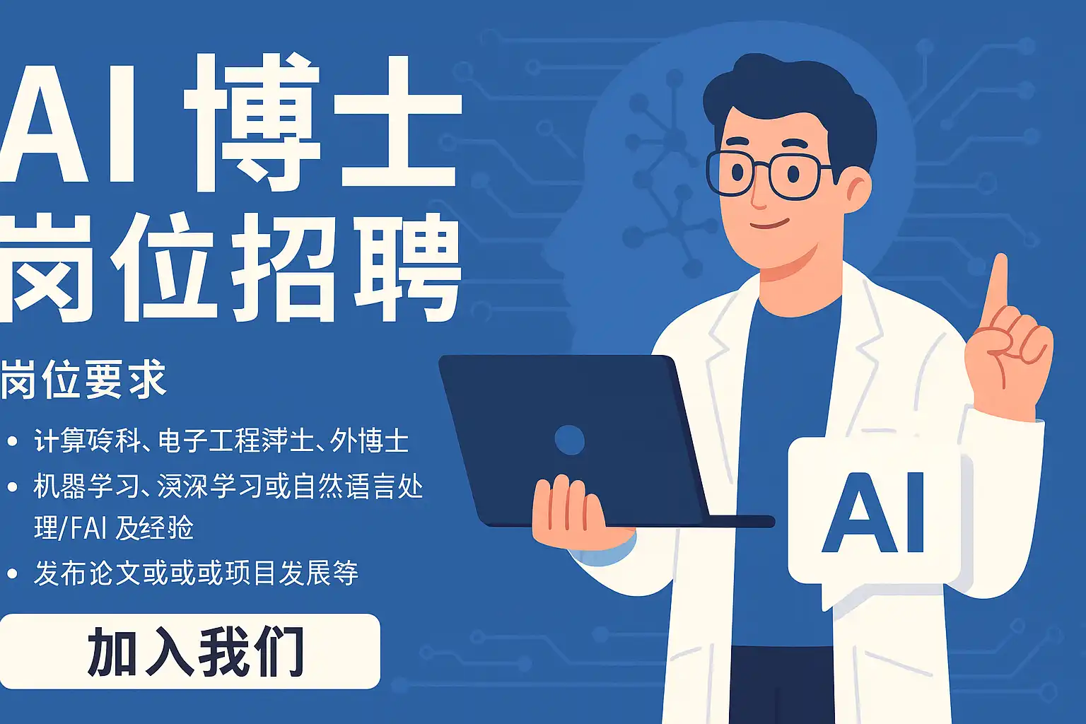 AI博士岗位通常要求申请者具备扎实的科研背景和丰富的项目经验,具体要求如下: