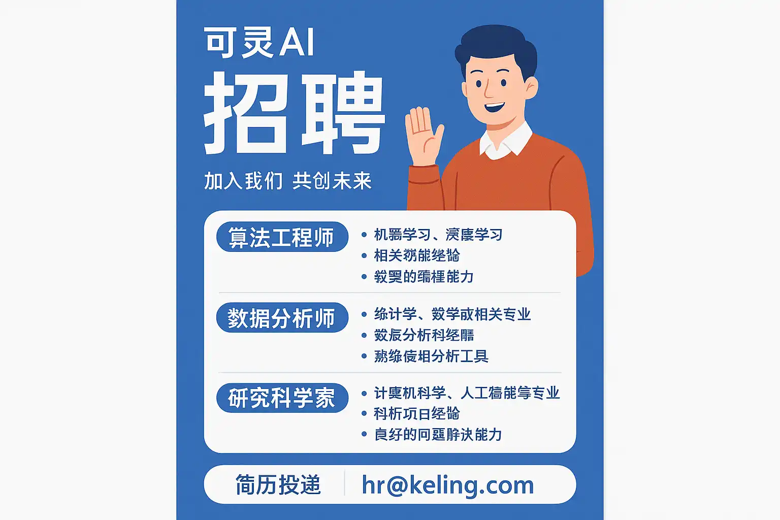 可灵AI招聘最新信息主要包括以下几个方面: