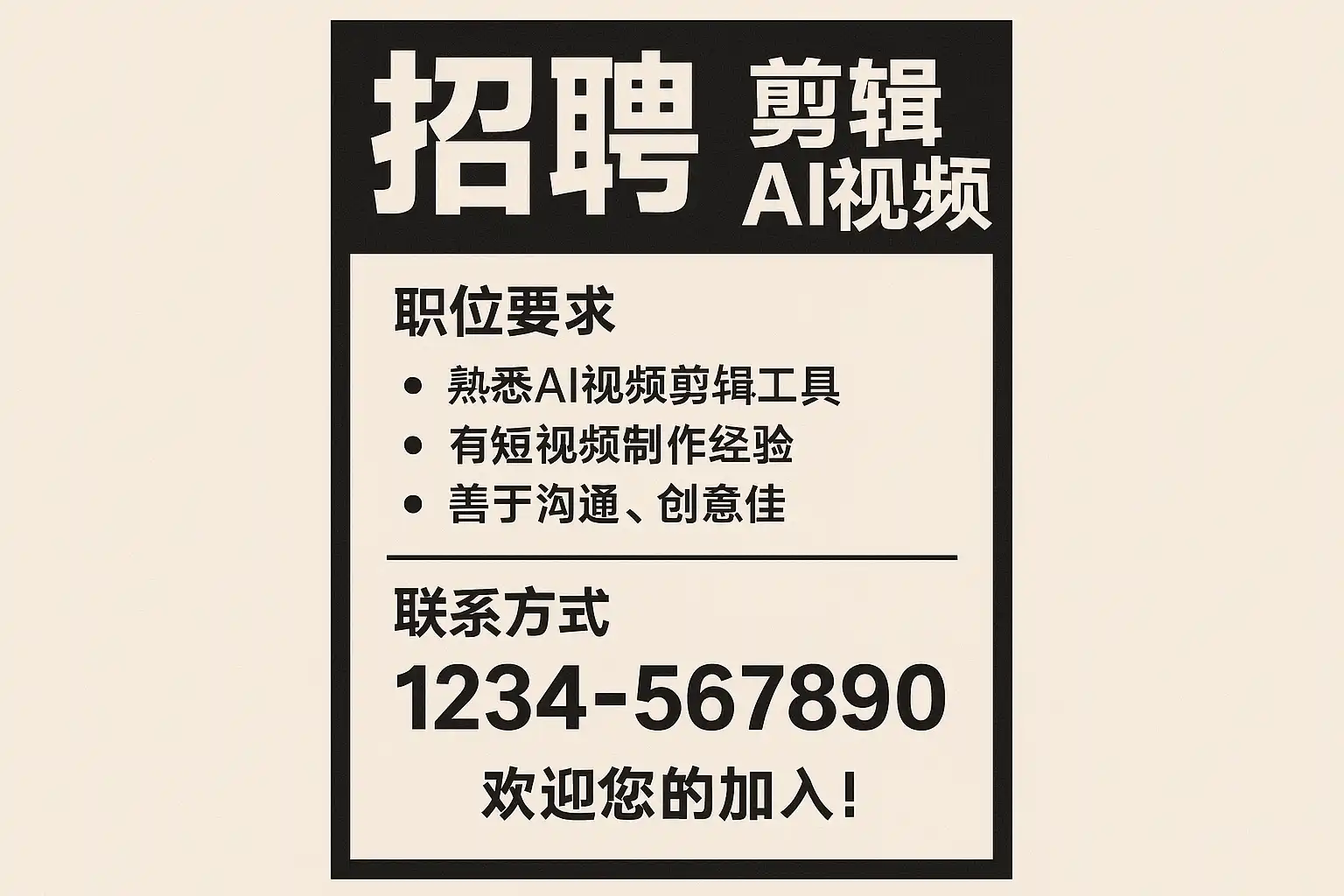 - 明确岗位职责与技能要求:细化AI视频剪辑相关技术指标,避免模糊岗位描述。