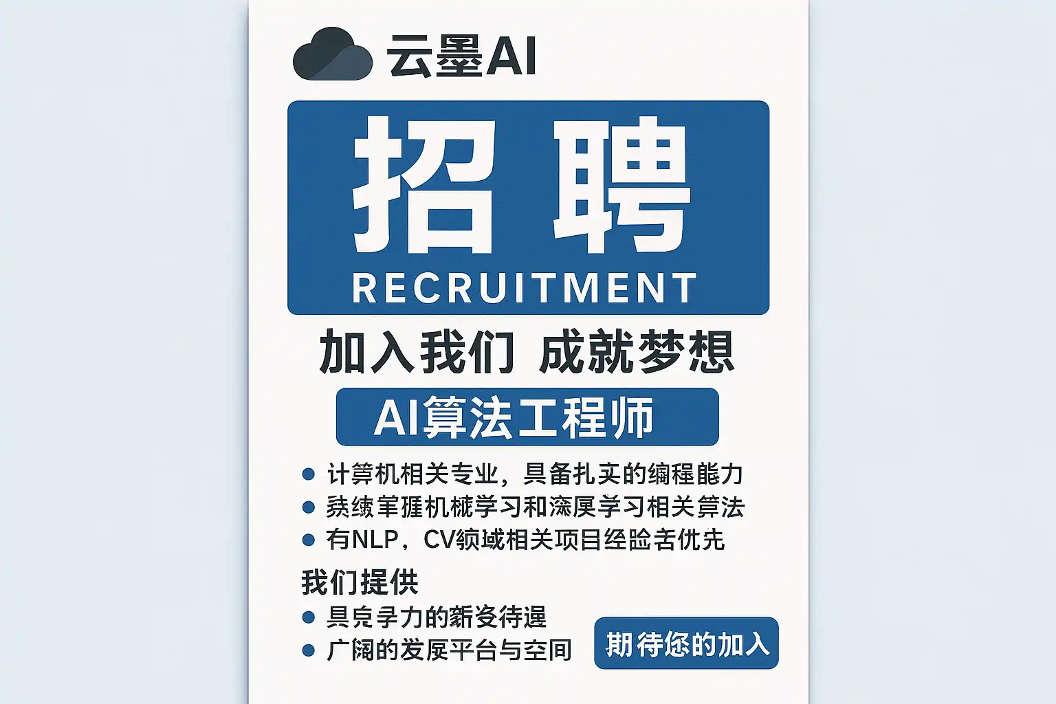 我最近听说云墨AI在招人,但具体有哪些岗位和招聘机会呢?我想了解最新的招聘信息,好判断自己适合申请哪种职位。