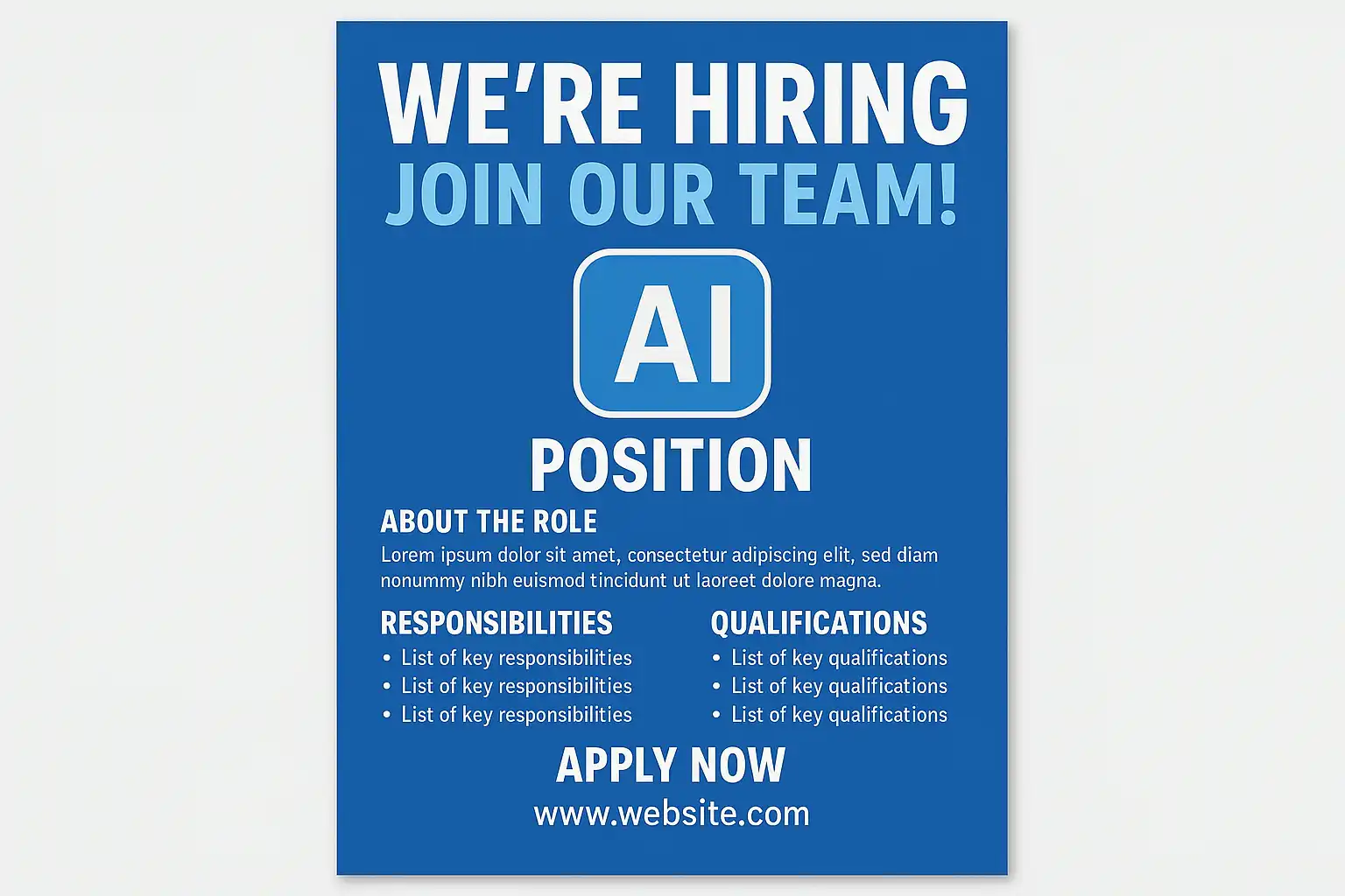 - 内容突出:突出岗位名称、福利和联系方式,方便应聘者快速获取信息。结合AI自动生成设计模板,能提升设计效率和视觉效果。
