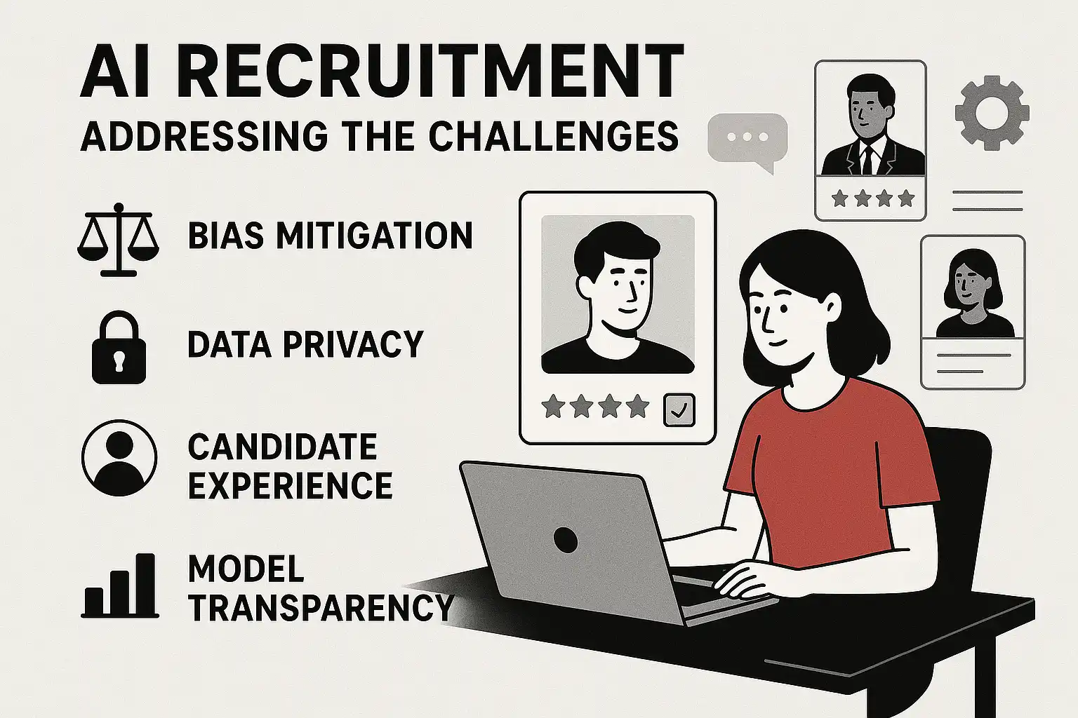 我在使用AI招聘系统时,发现候选人匹配度不高,筛选效率也不理想。我想了解AI招聘中常见的挑战具体有哪些,方便我更有针对性地优化流程。