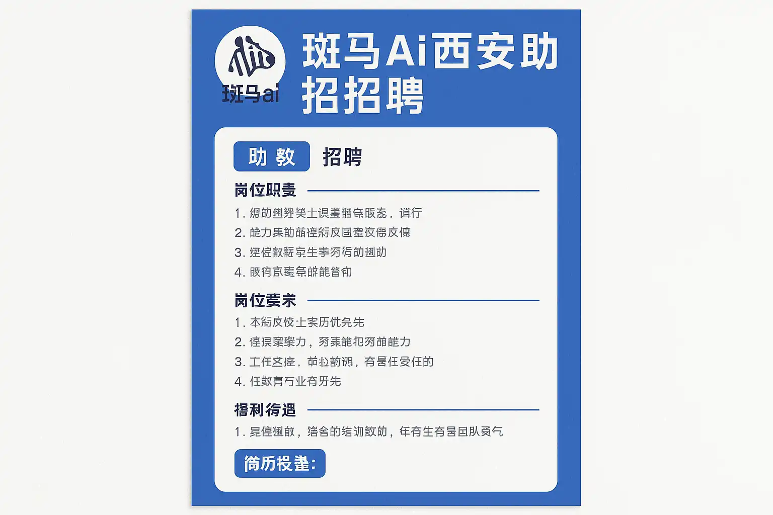 | 招聘条件 | 大专及以上学历,具备基础AI知识,良好沟通能力 |