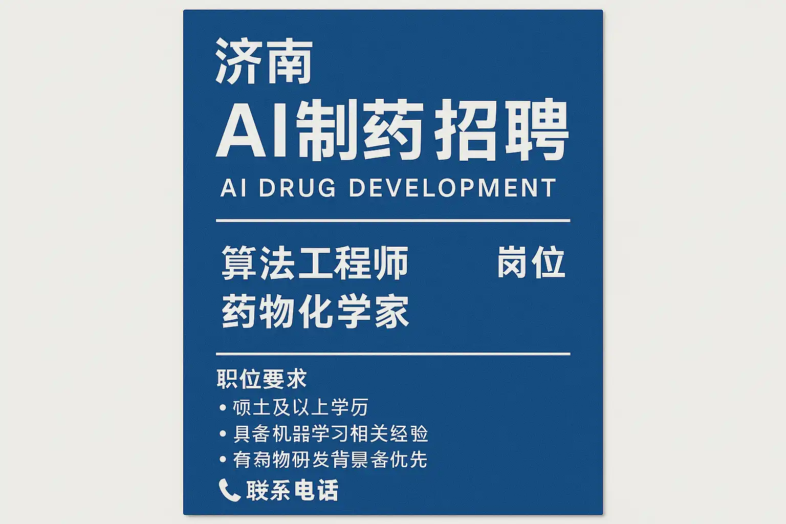 《济南AI制药招聘电话是多少?最新岗位信息等你了解》